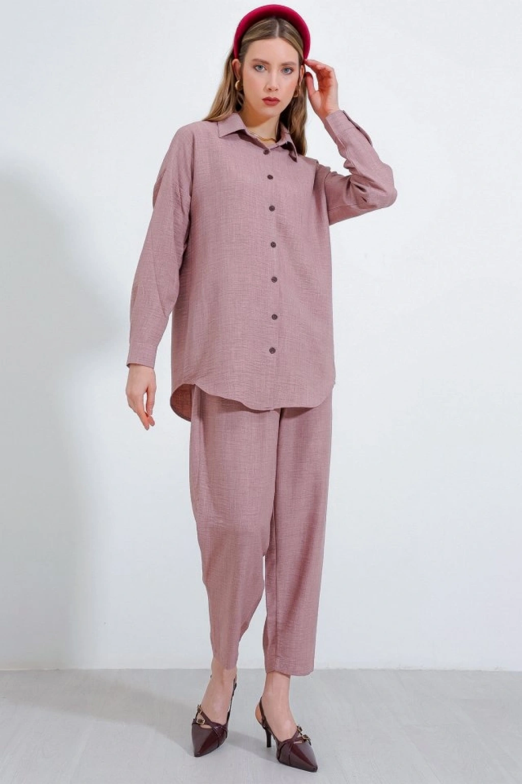 Gül Kurusu Oversize Keten Alt Üst Takım 6622