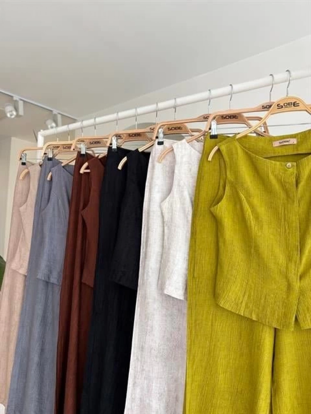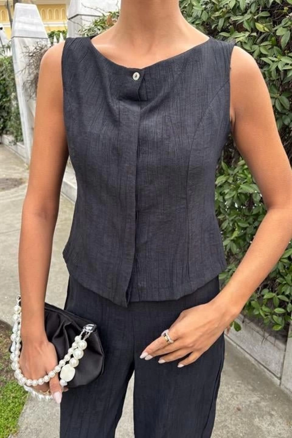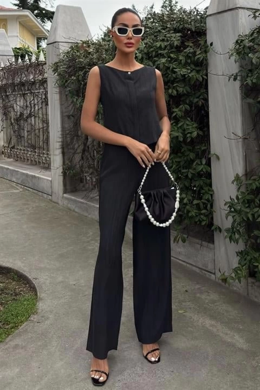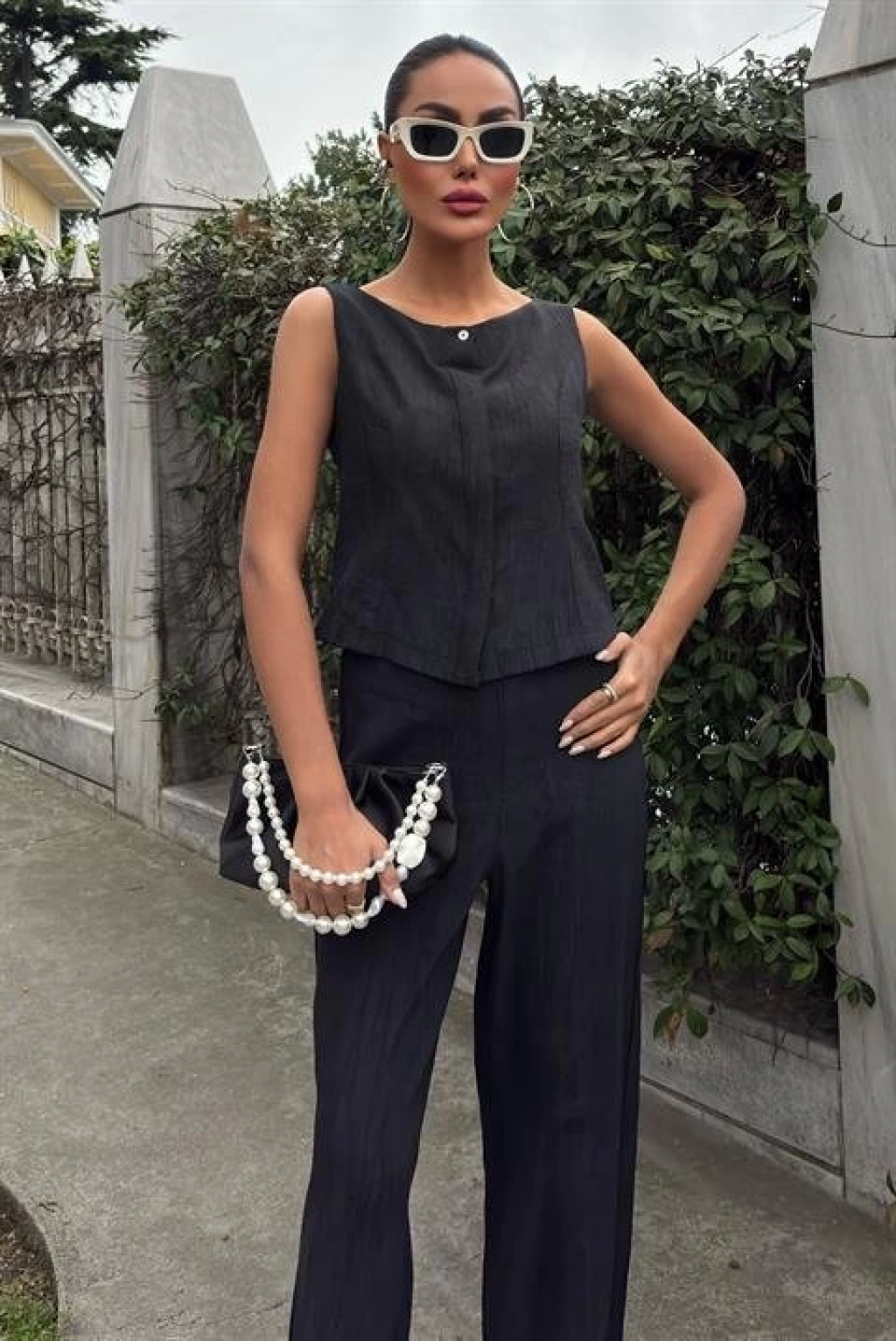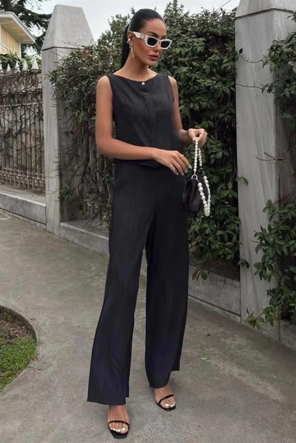 Sıfır Kollu Bluz Batik Desenli Pantolon İkili Takım 10181-08