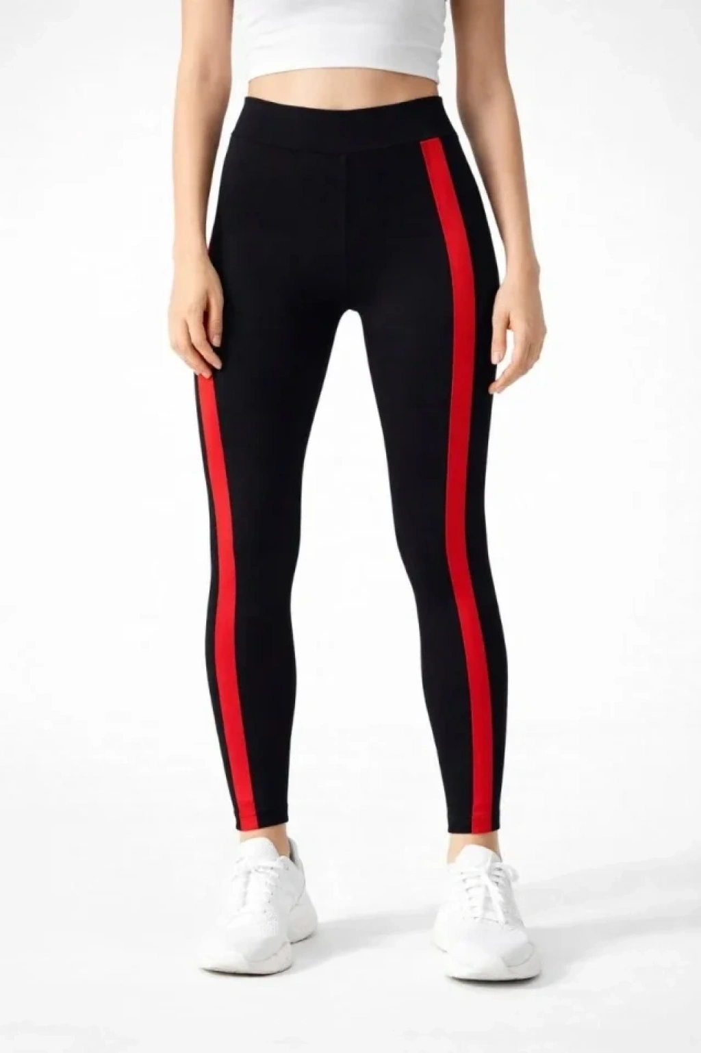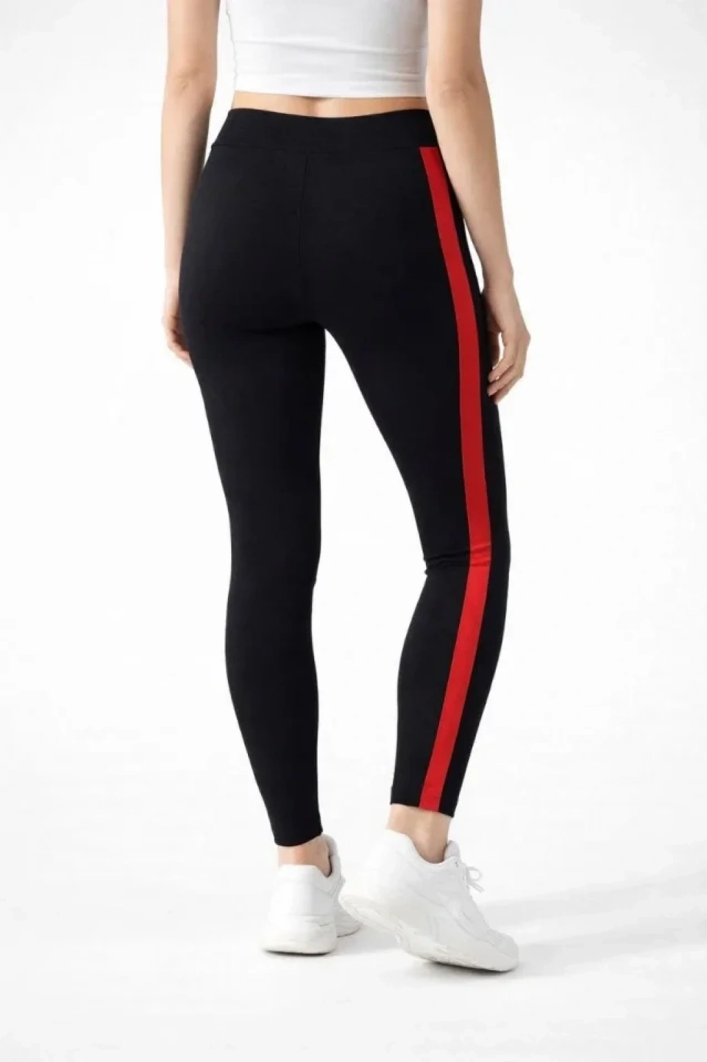 Likralı Yan Kırmızı Şeritli Detaylı Tayt - Siyah