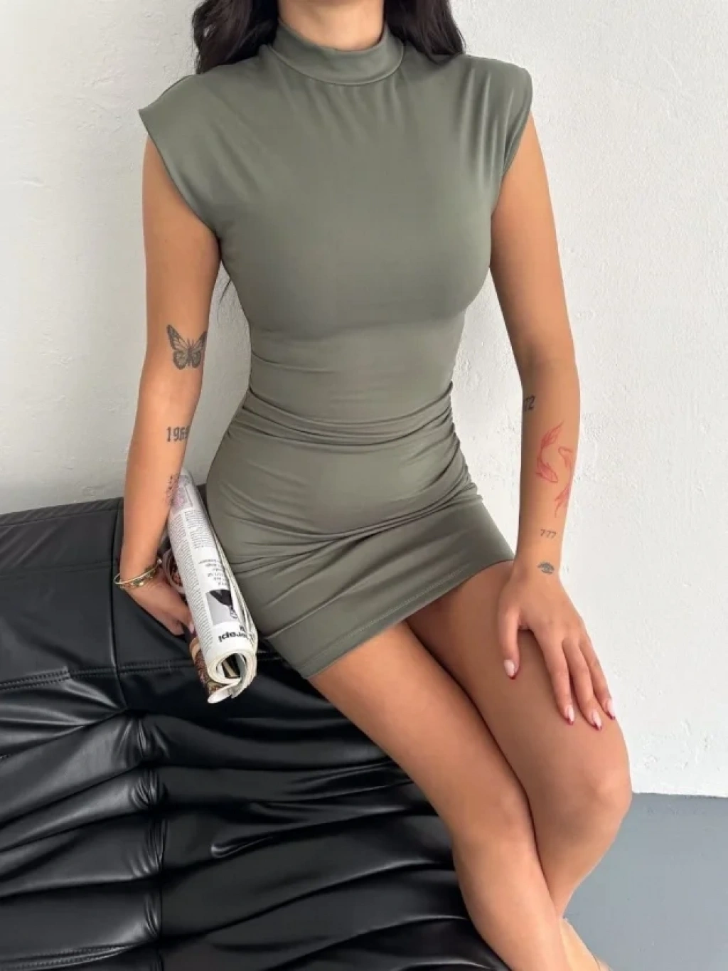 Mini Elbise Yarım Balıkçı Yaka Vücuda Oturan Şık Günlük Elbise - Mint Yeşili