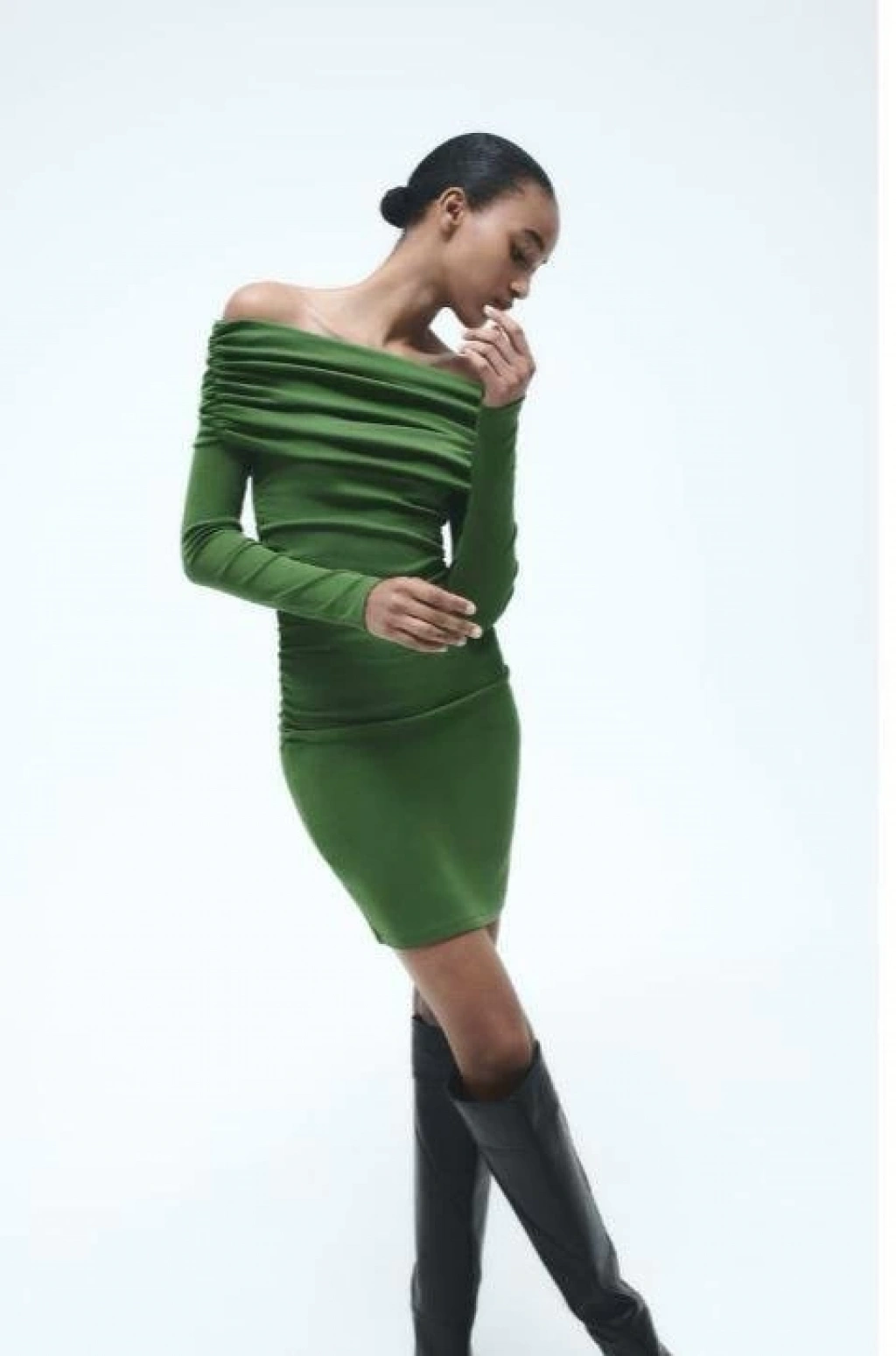 Kadın Madonna Mendil Yaka Fırsat ürün Büzgülü Mini Elbise