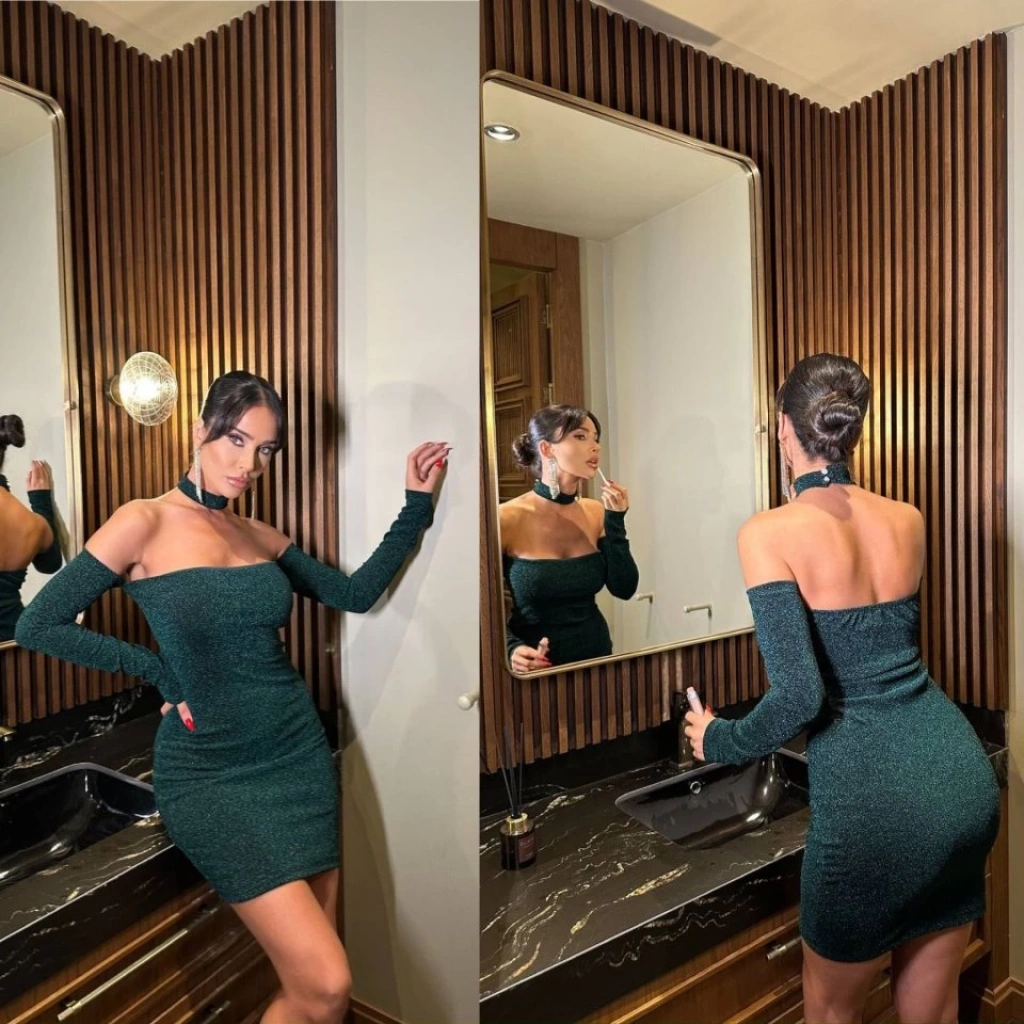 Modelin Ölçüleri: Boy:165, Kg:55, Göğüs:90, Bel:72, Kalça: 100