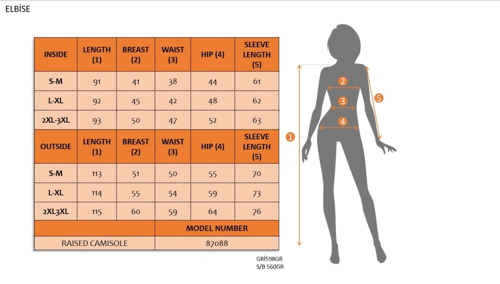 Modelin Ölçüleri: Boy:165, Kg:55, Göğüs:90, Bel:72, Kalça: 100