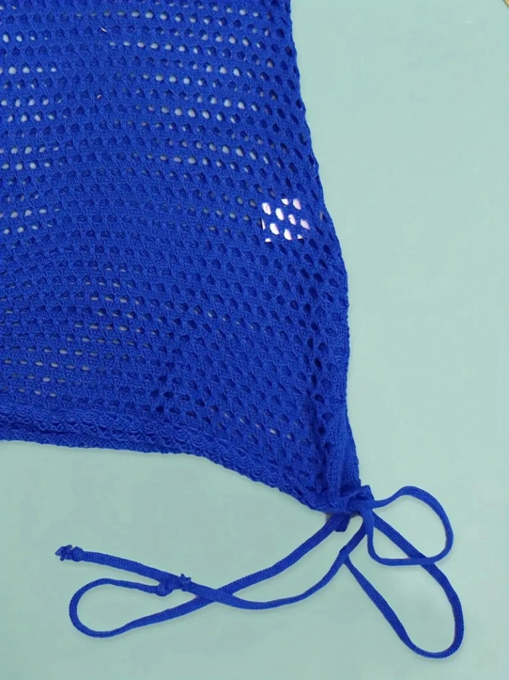 Kadın Askılı Eteği Büzgü Bağlama Detay Delikli örme Triko Pareo Elbise