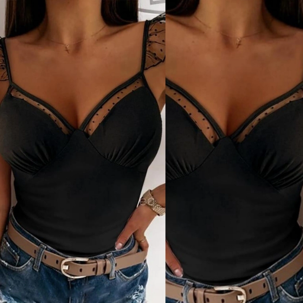 Kadın Askılı Kalp Yaka Tül Detay Dalgıç Bluz