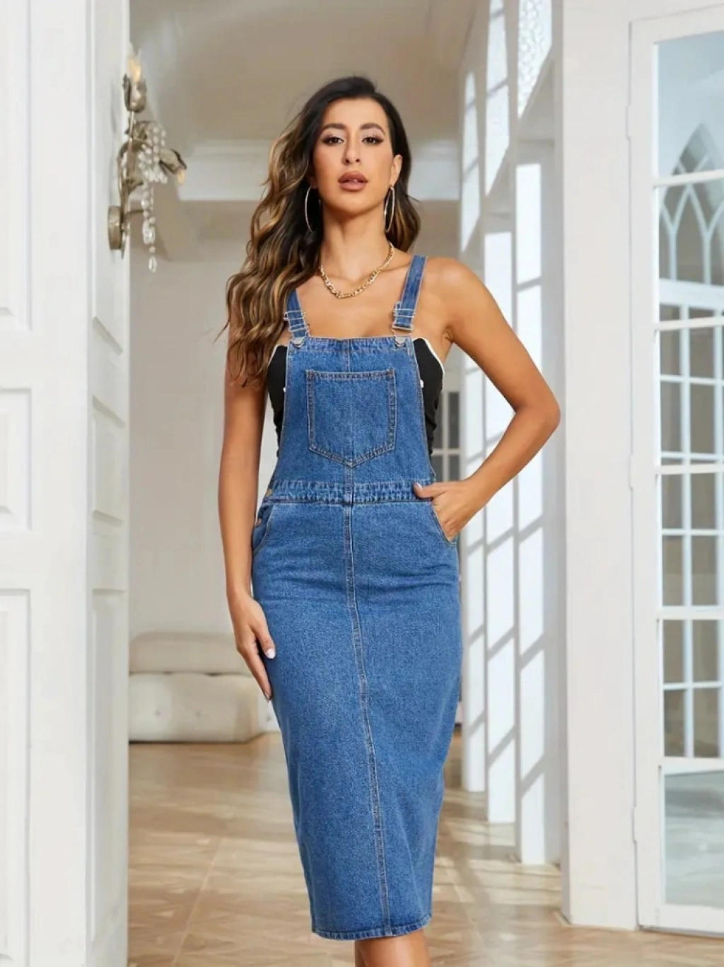 Kadın Askılı ön Ve Arka Cep Detaylı Diz Altı Kot Salopet