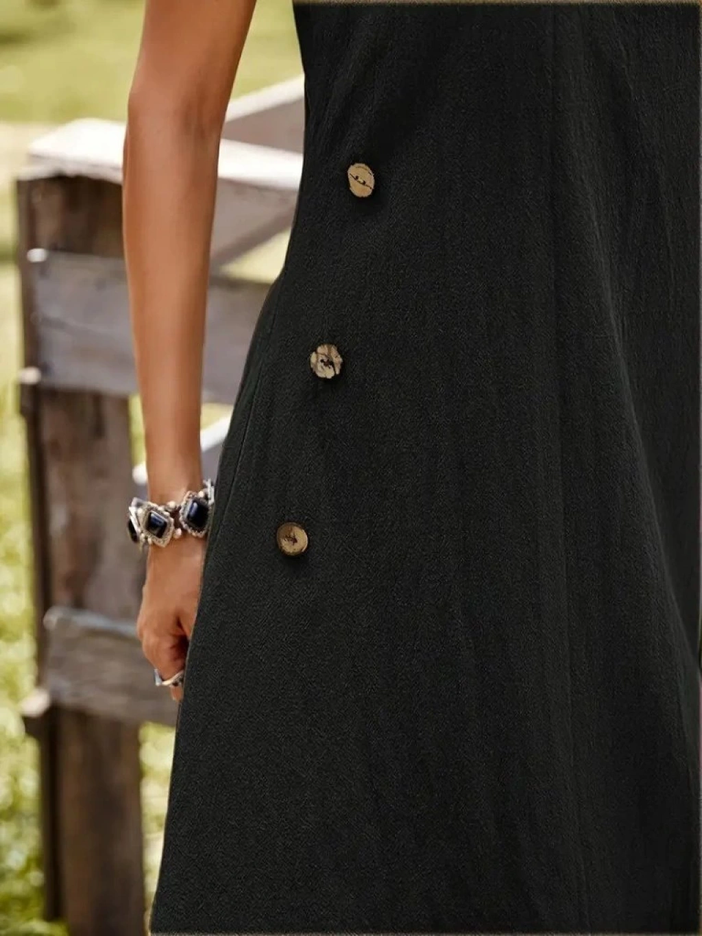 Kadın Askılı Yuvarlak Yaka Düğmeli Asimetrik Kesim Detaylı Ithal Keten Elbise