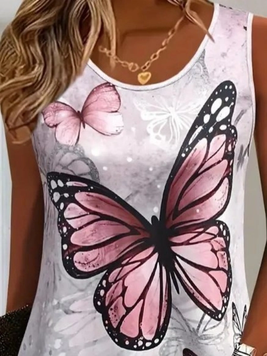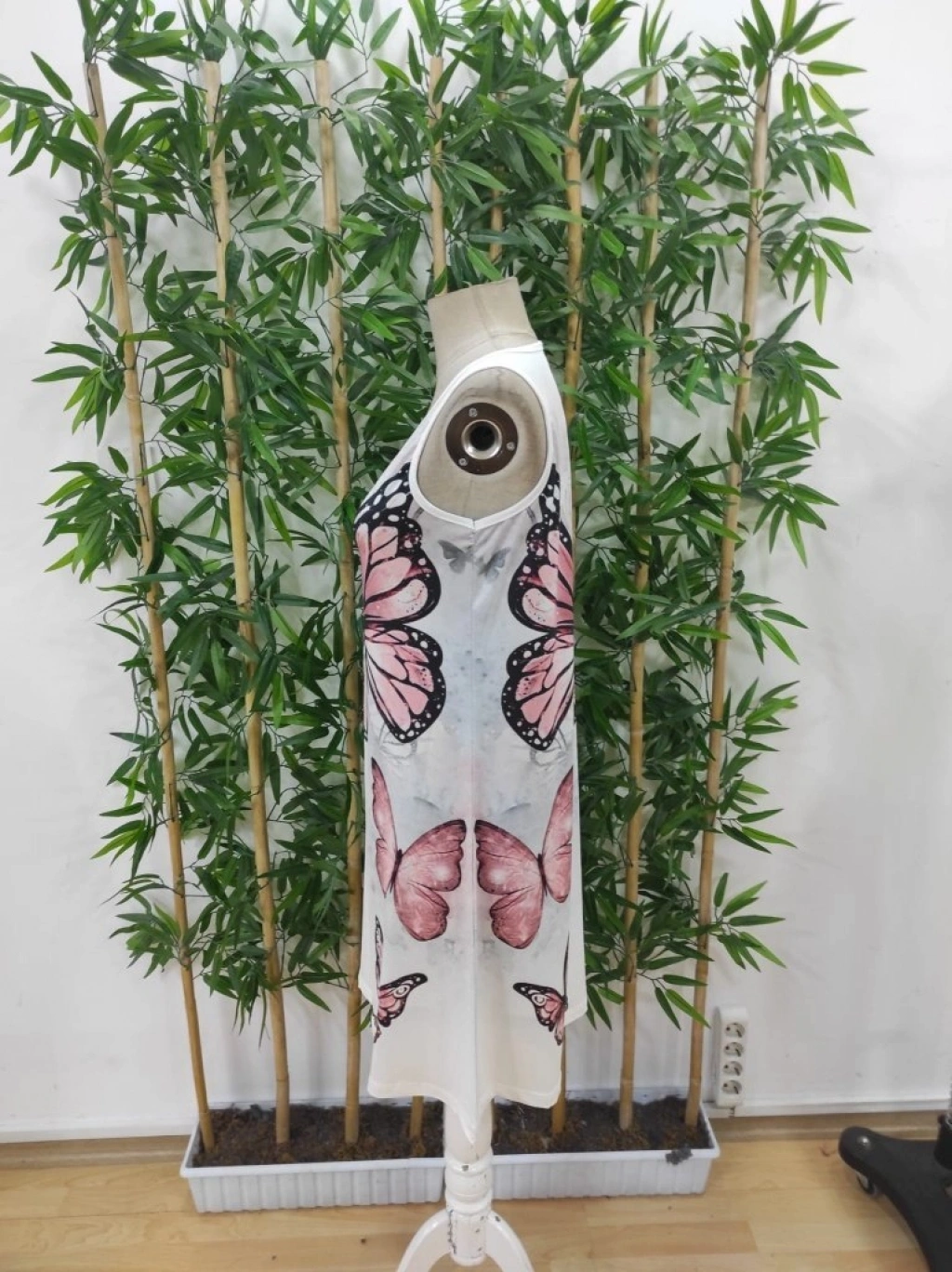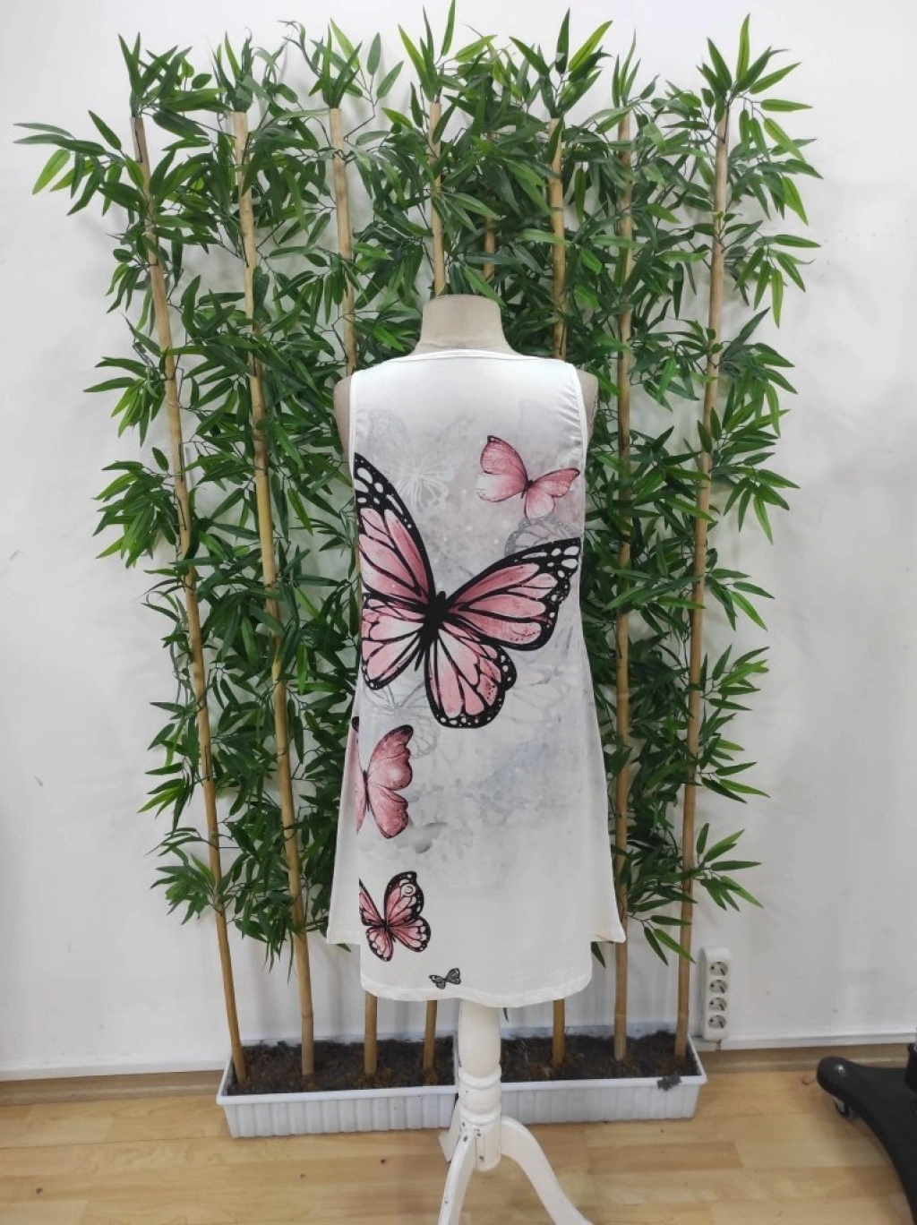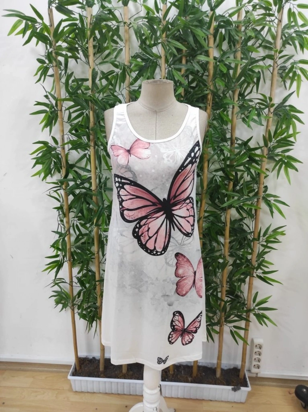 Kadın Askılı Yuvarlak Yaka Kelebek Desenli Süprem Elbise