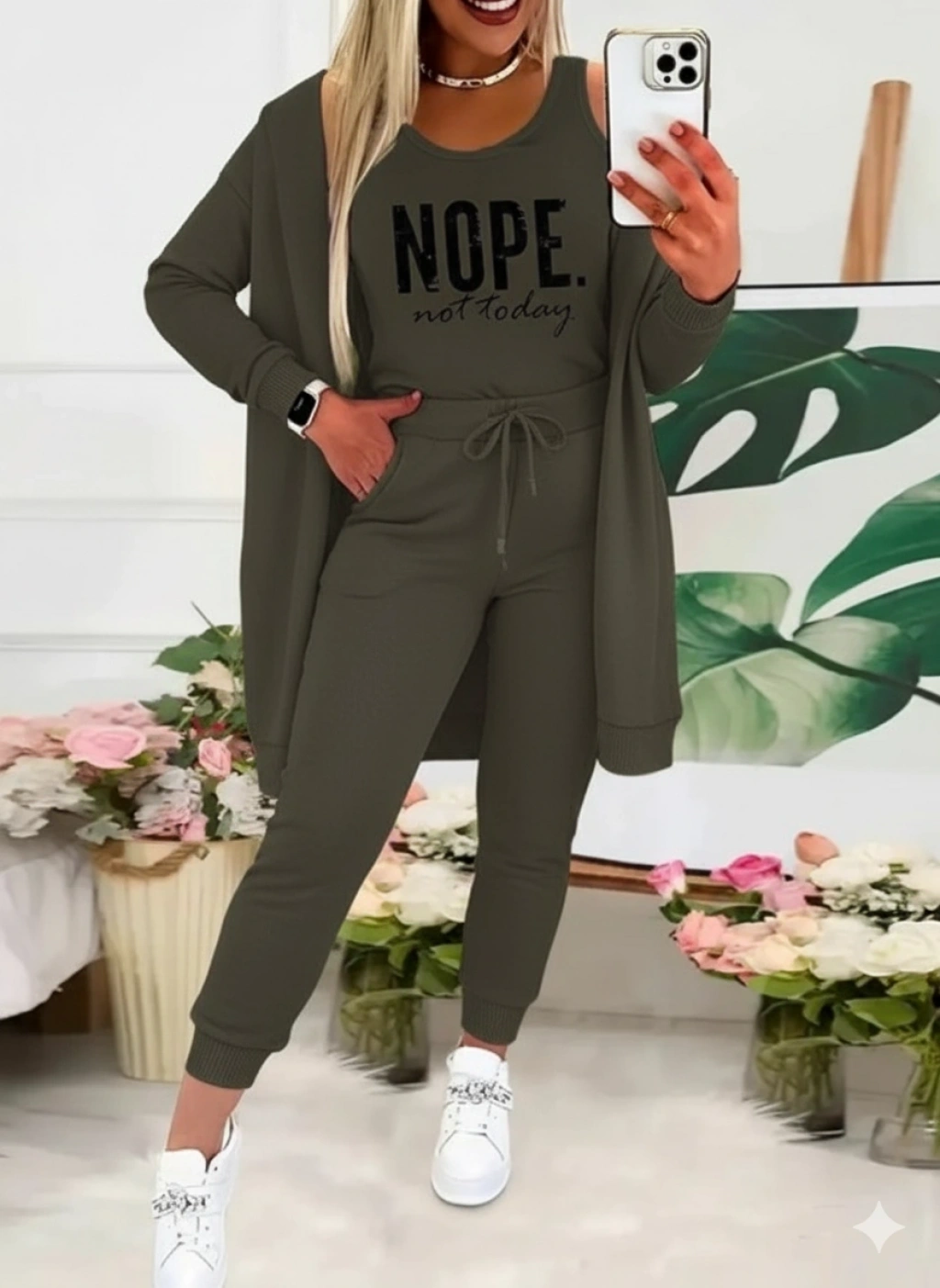 Kadın Askılı Yuvarlak Yaka Yazılı Viskon Iki Iplik Bluz Ceket Ve Pantolon 3lü Takım