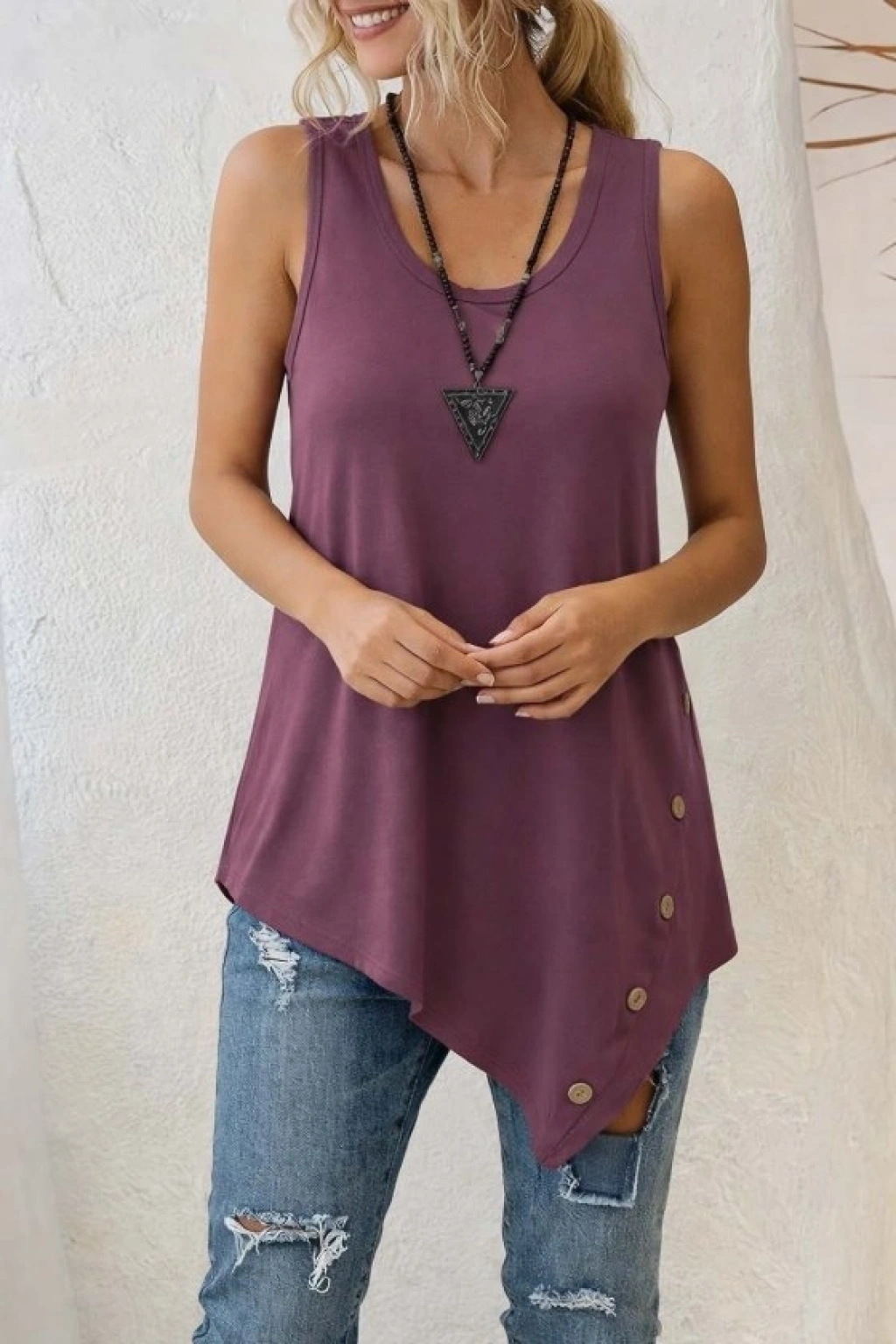Kadın Askılı Yuvarlak Yakalı Asimetrik Kesim Detaylı Viskon Bluz