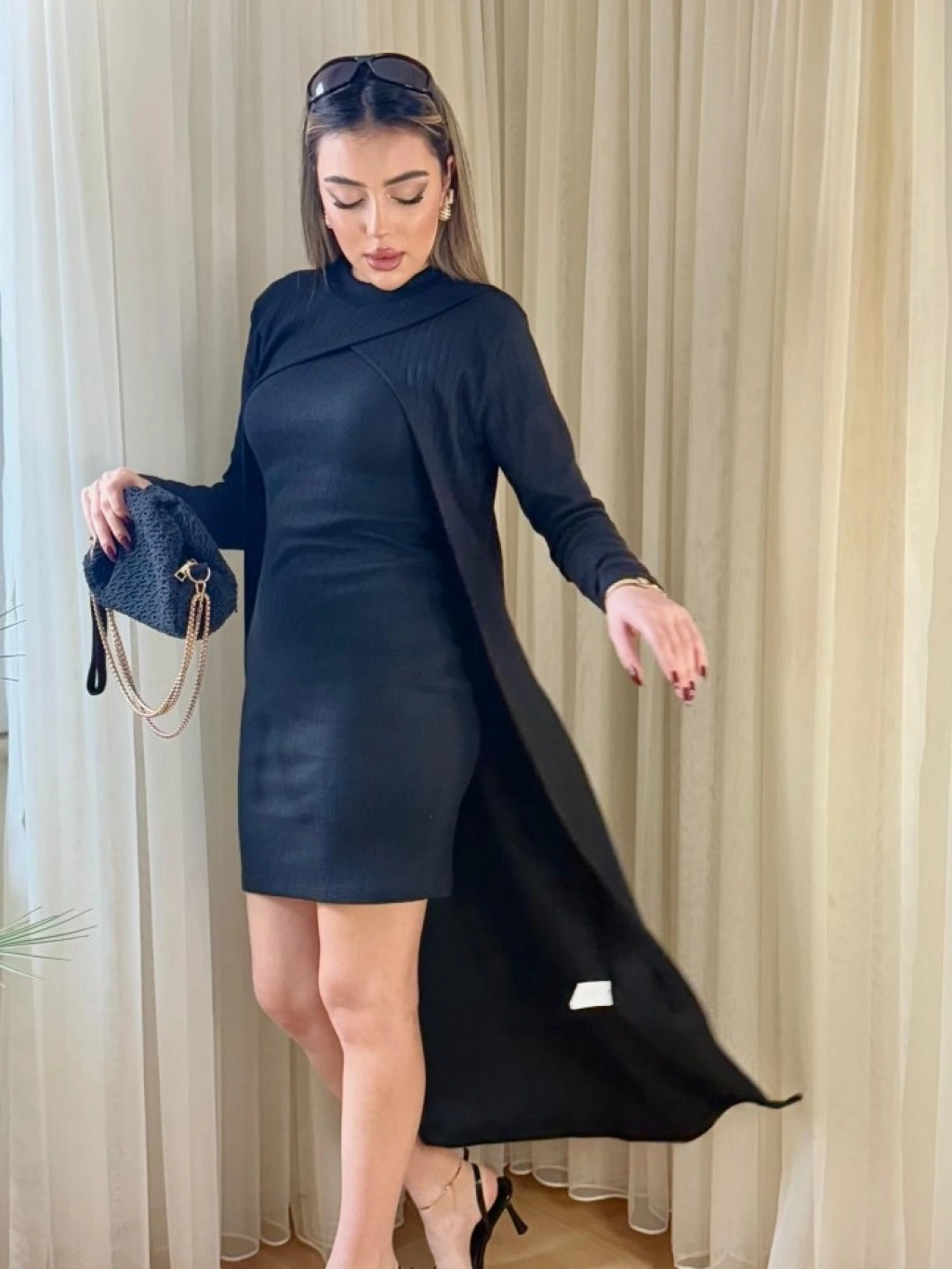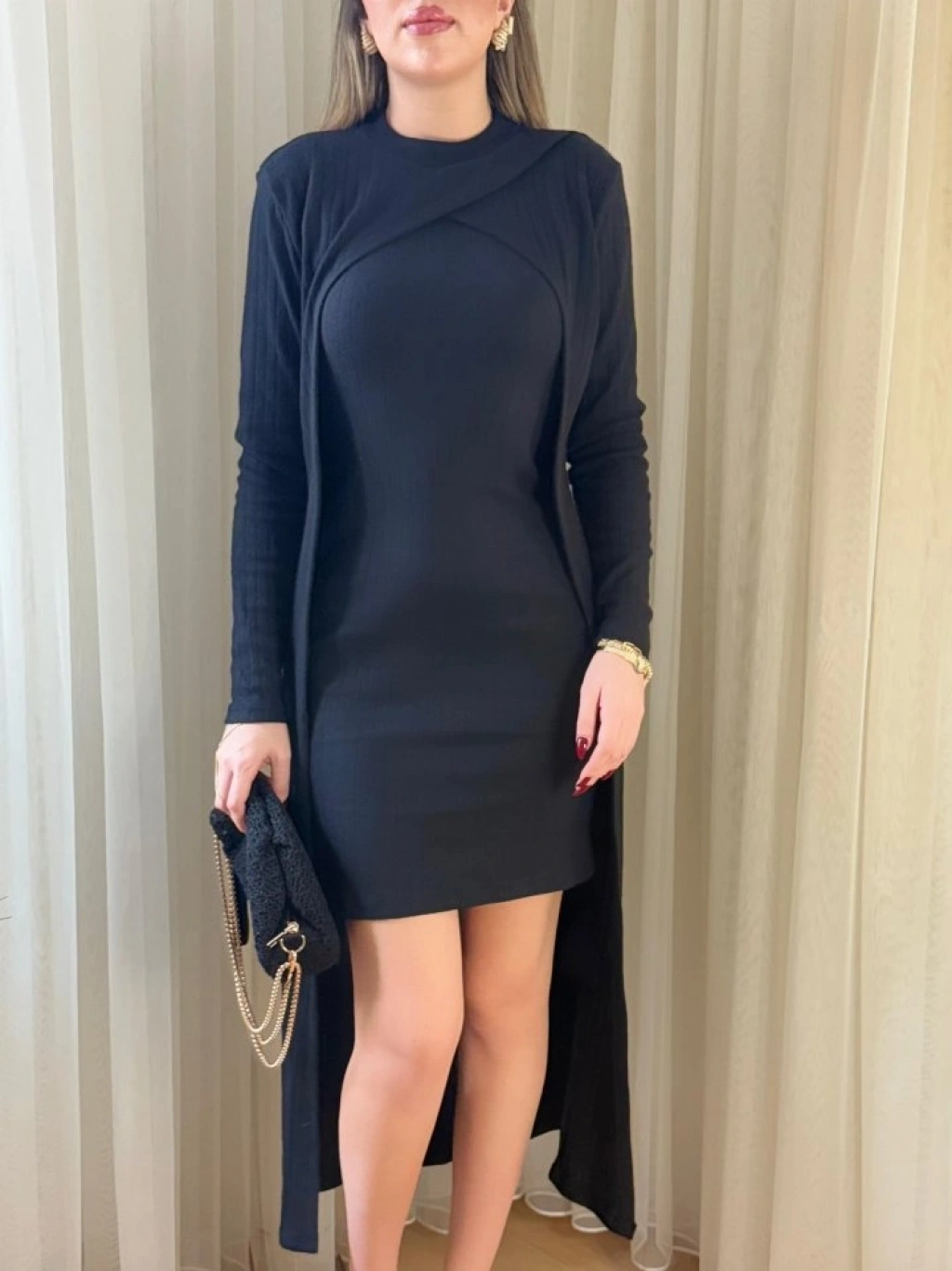 Kadın Askılı Yuvarlak Yakalı Elbise Ve Yarı Balıkçı Yakalı şardonlu Kaşkorse Ikili Takım