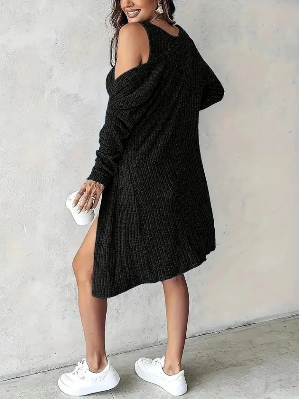 Kadın Askılı Yuvarlak Yakalı önü Düğmeli şardonlu Kaşkorse Mini Elbise Ve Kısa Ceket