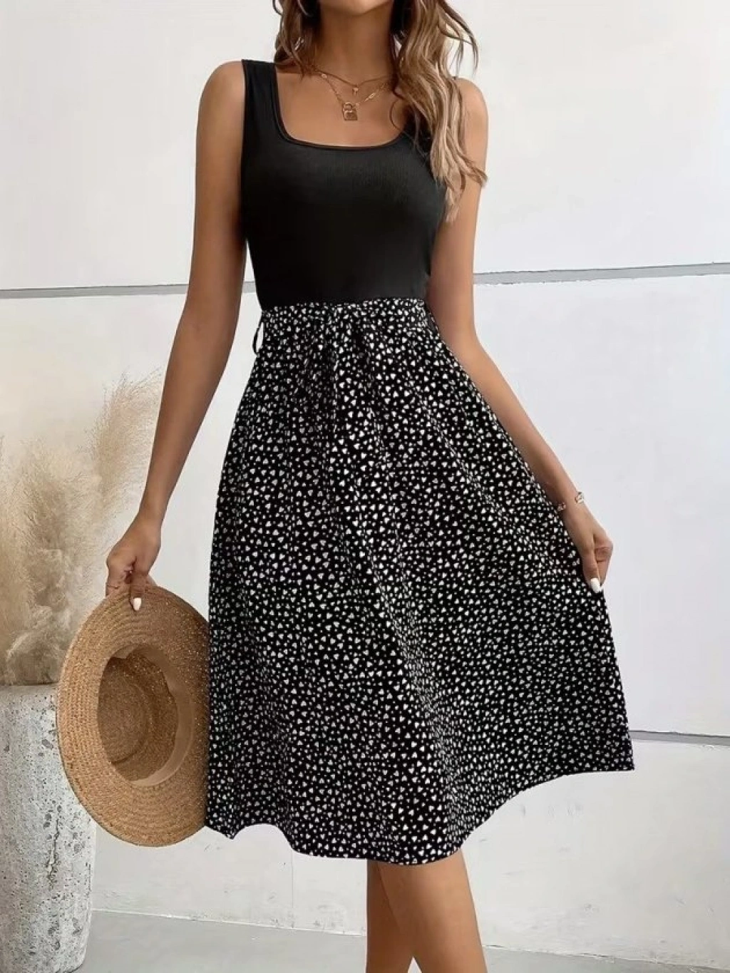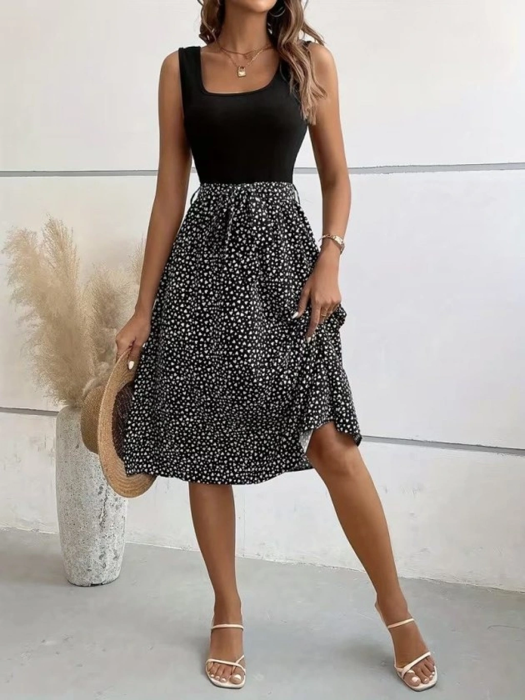 Kadın Askılı Yuvarlak Yakalı üst Viskon Alt Süprem Kısa Elbise