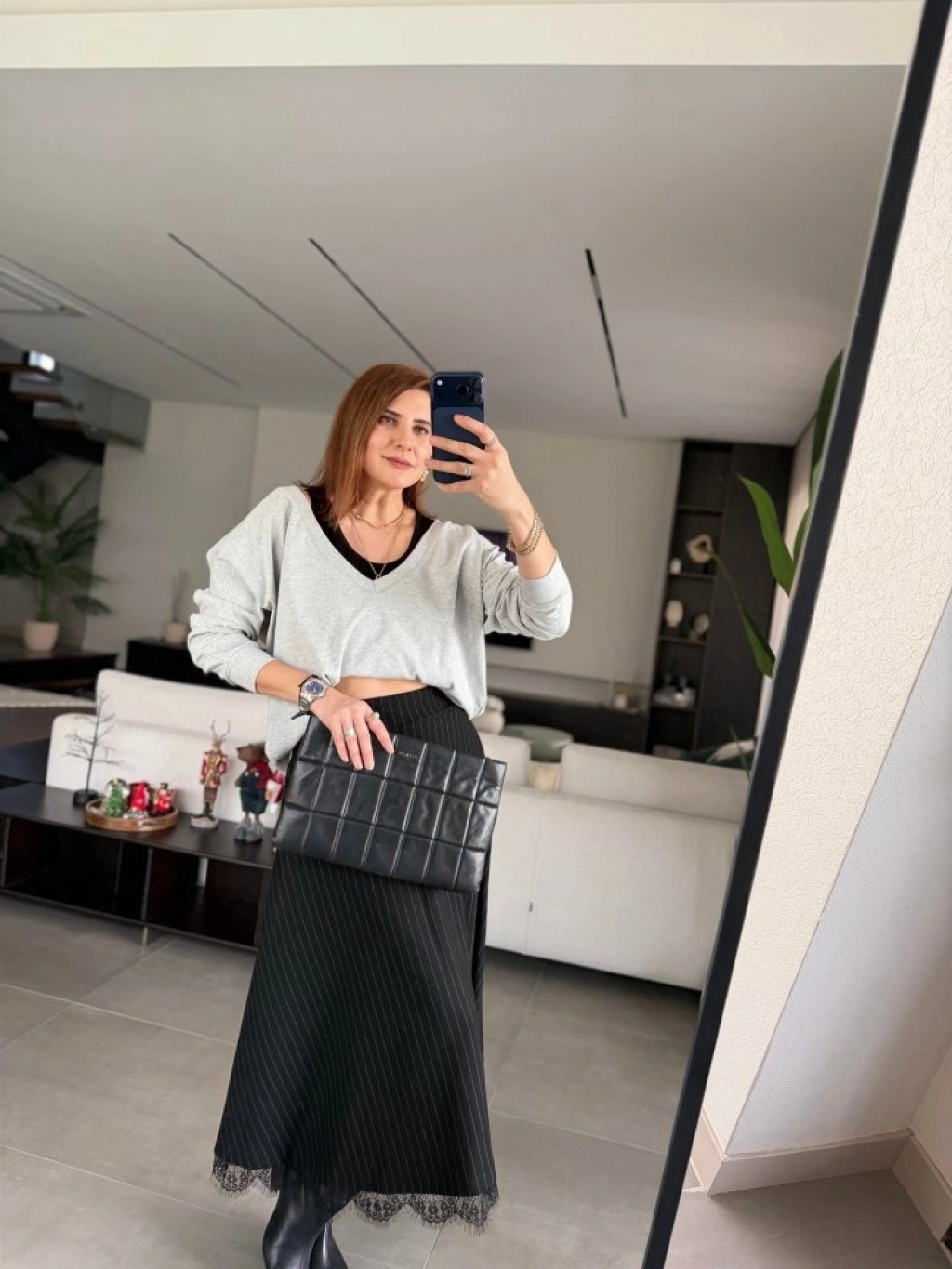 Modelin Ölçüleri: Boy:165, Kg:55, Göğüs:90, Bel:72, Kalça: 100