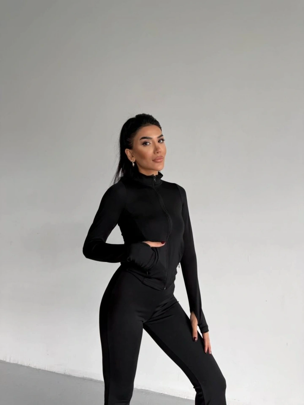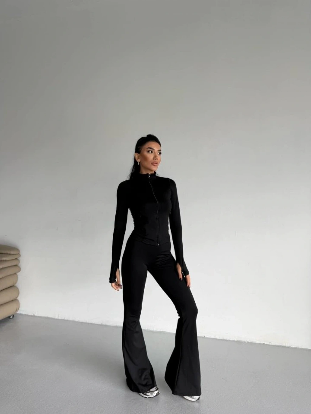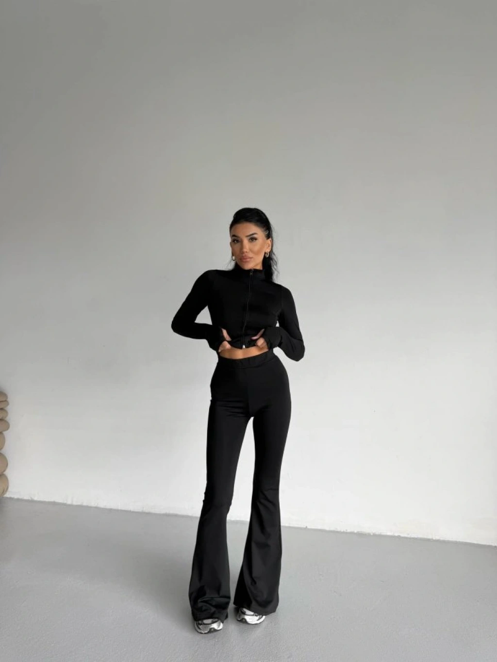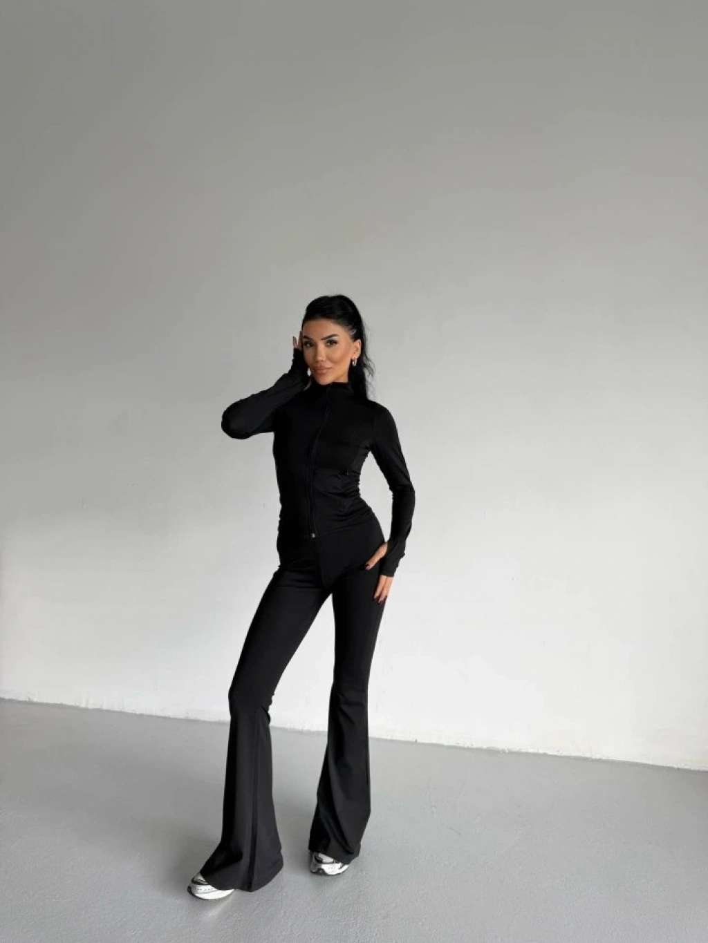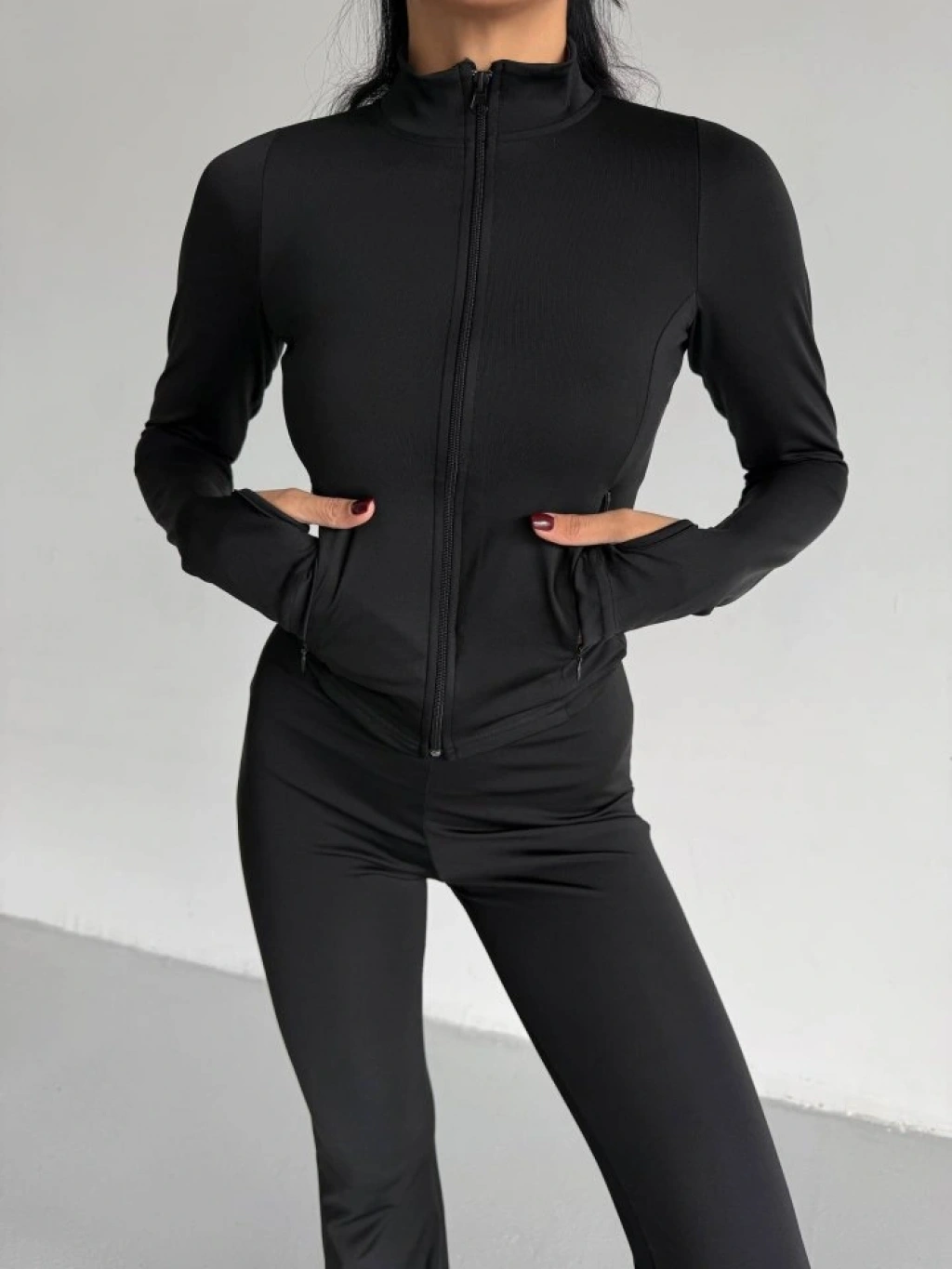 Kadın Balıkçı Yaka Cep Detaylı Ceket Ve Ispanyol Paça Spor Ikili Takım