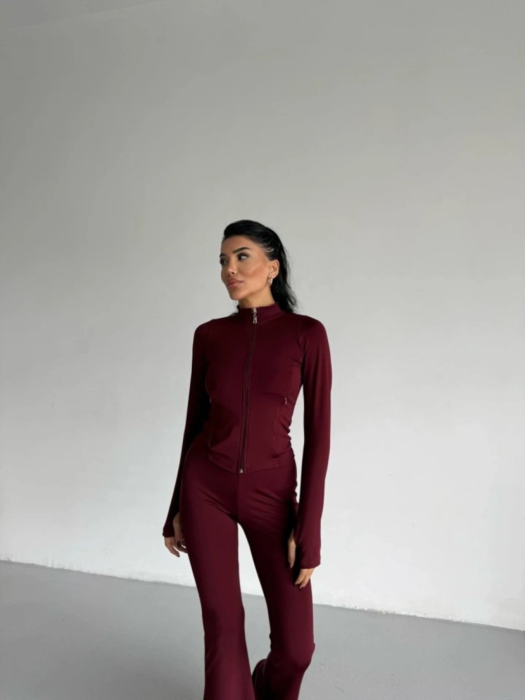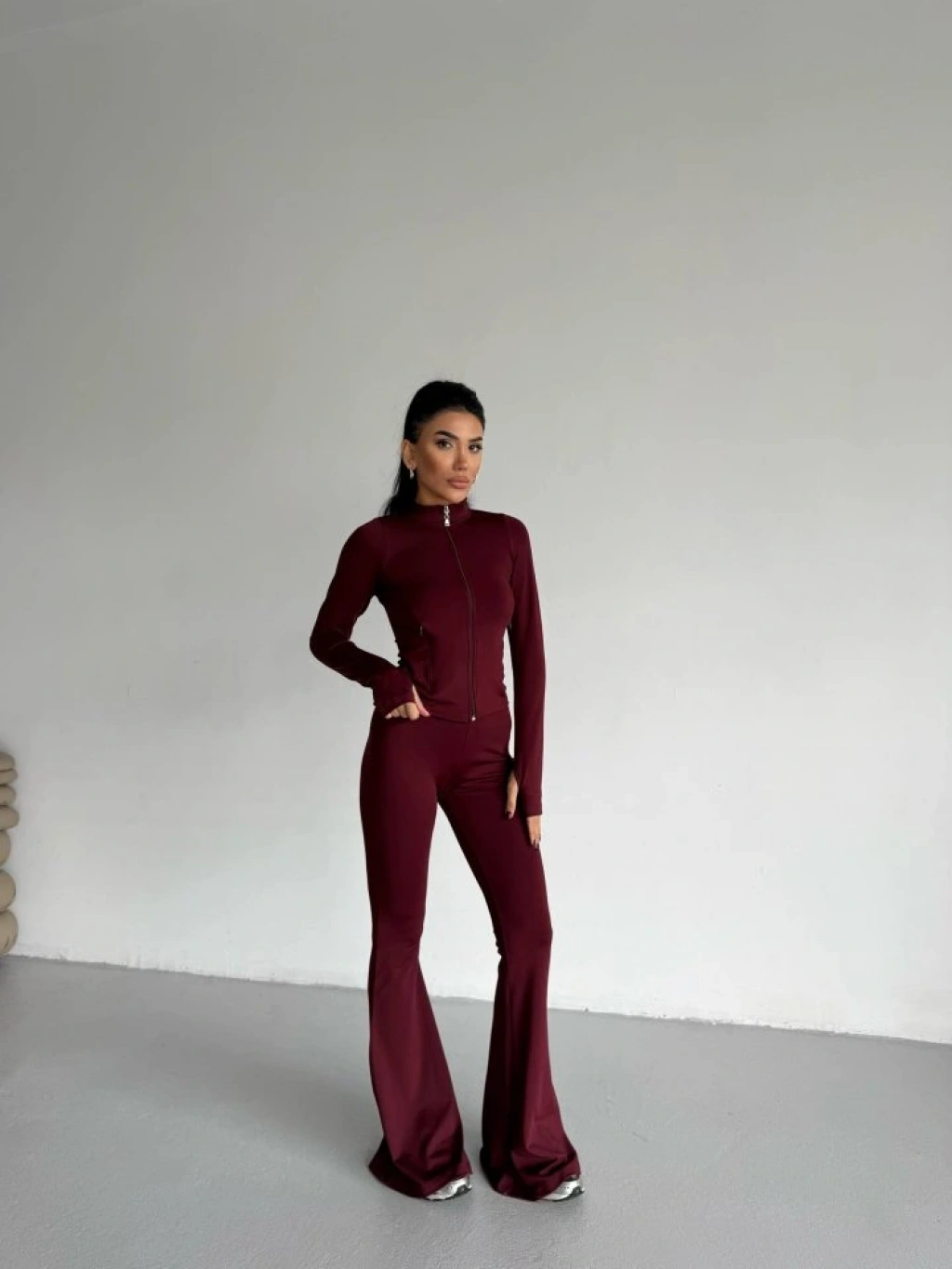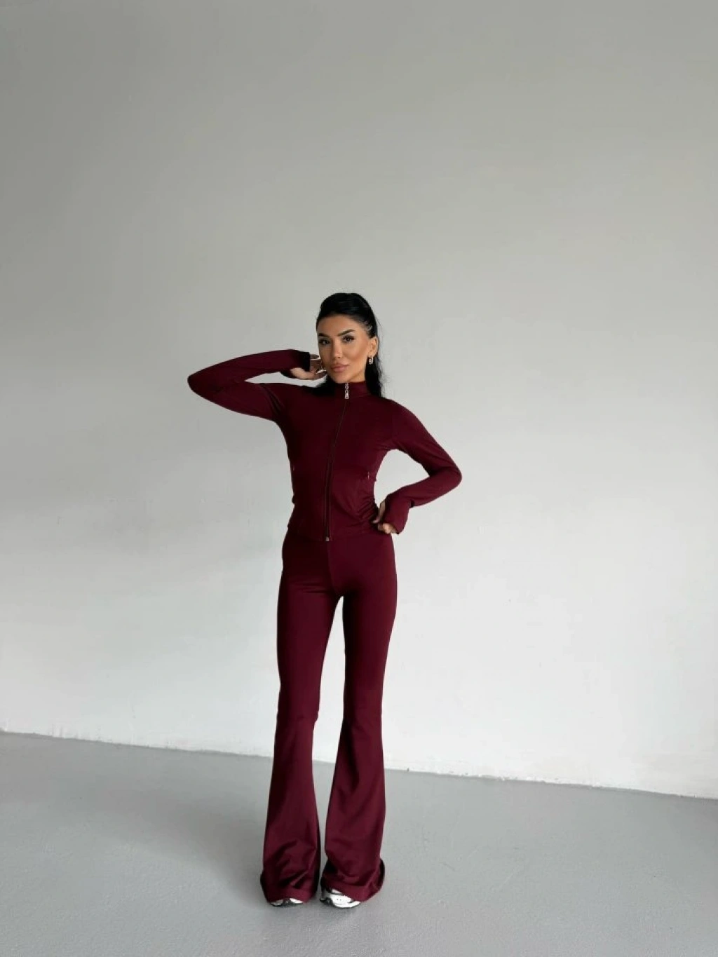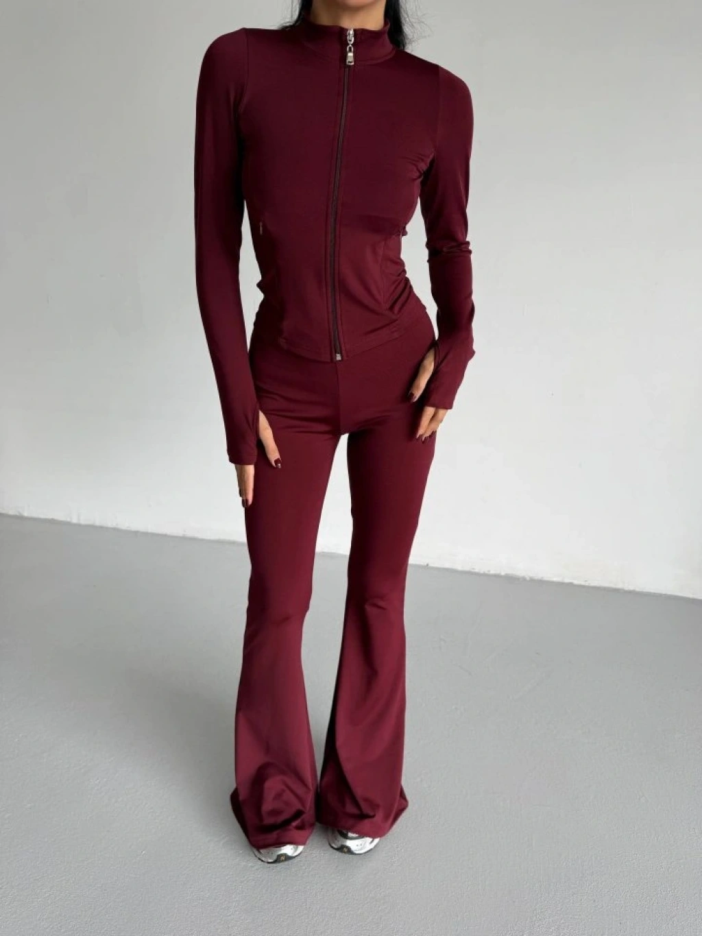 Kadın Balıkçı Yaka Cep Detaylı Ceket Ve Ispanyol Paça Spor Ikili Takım