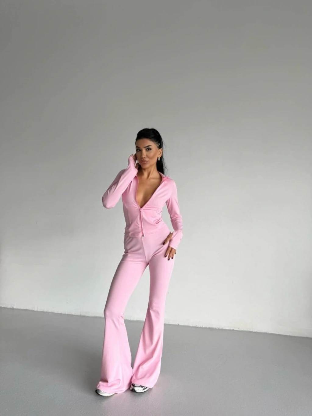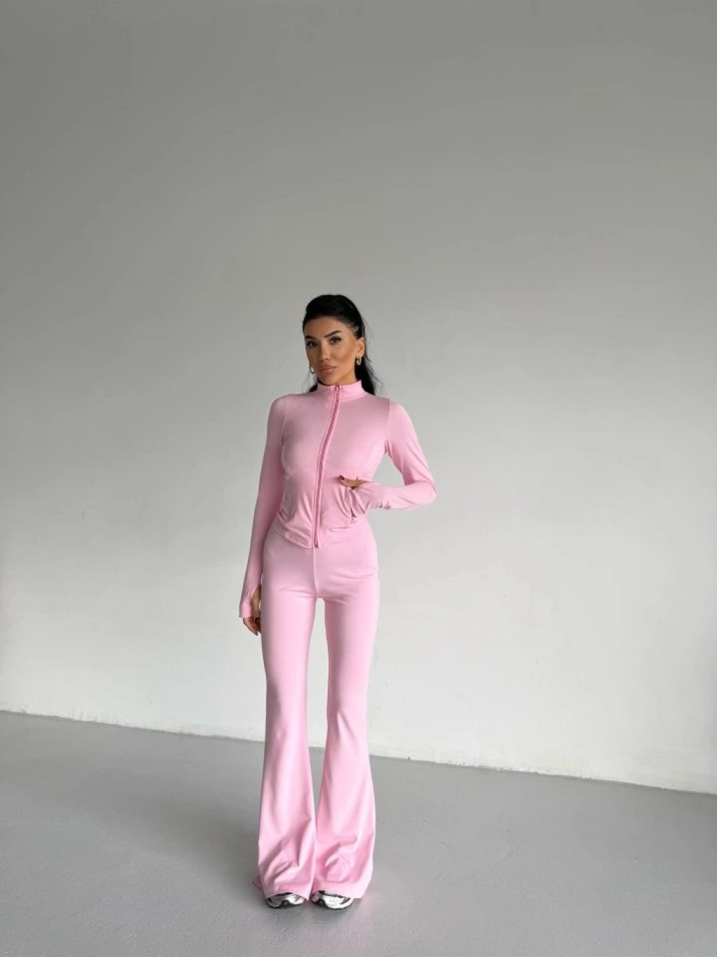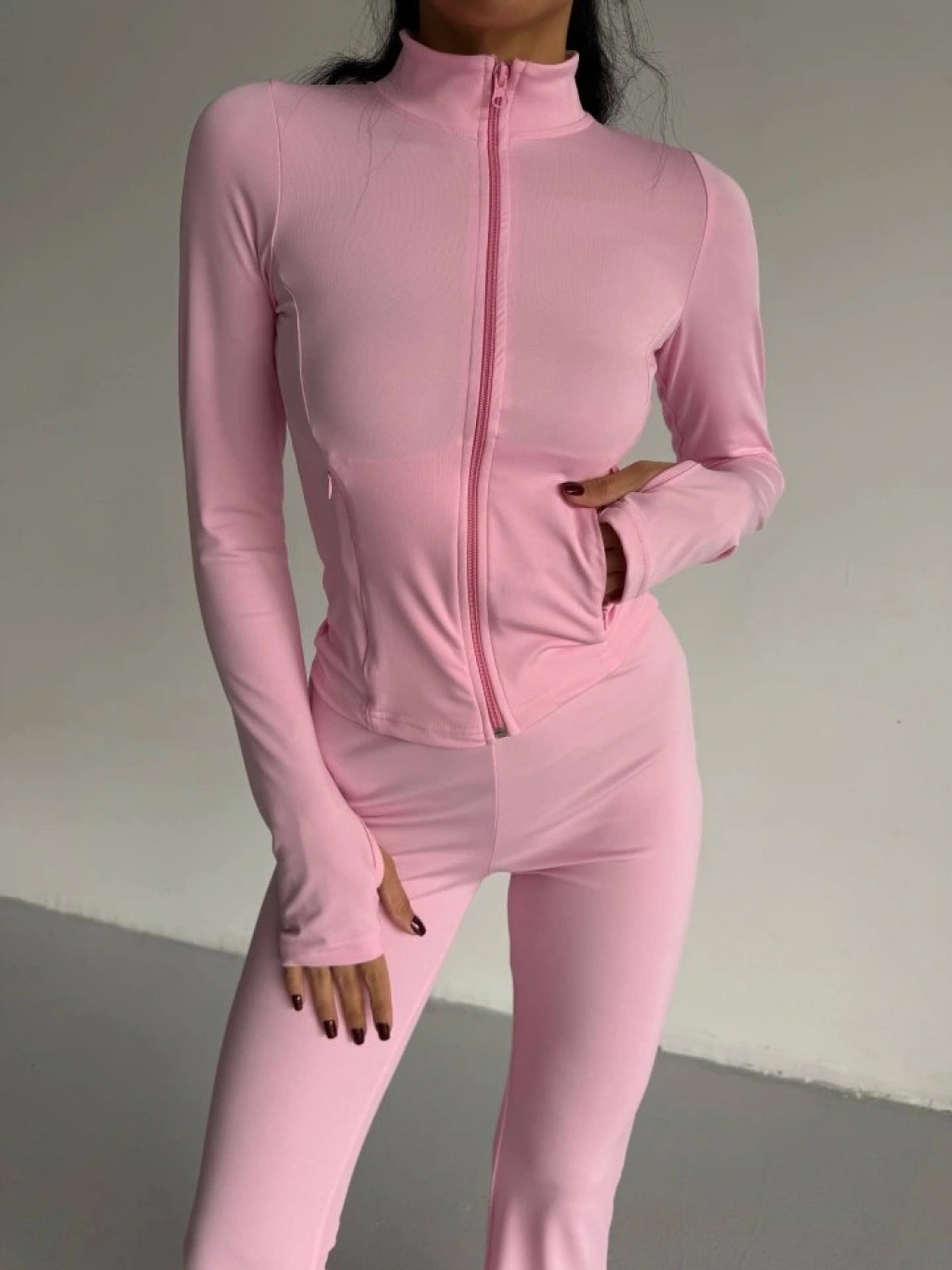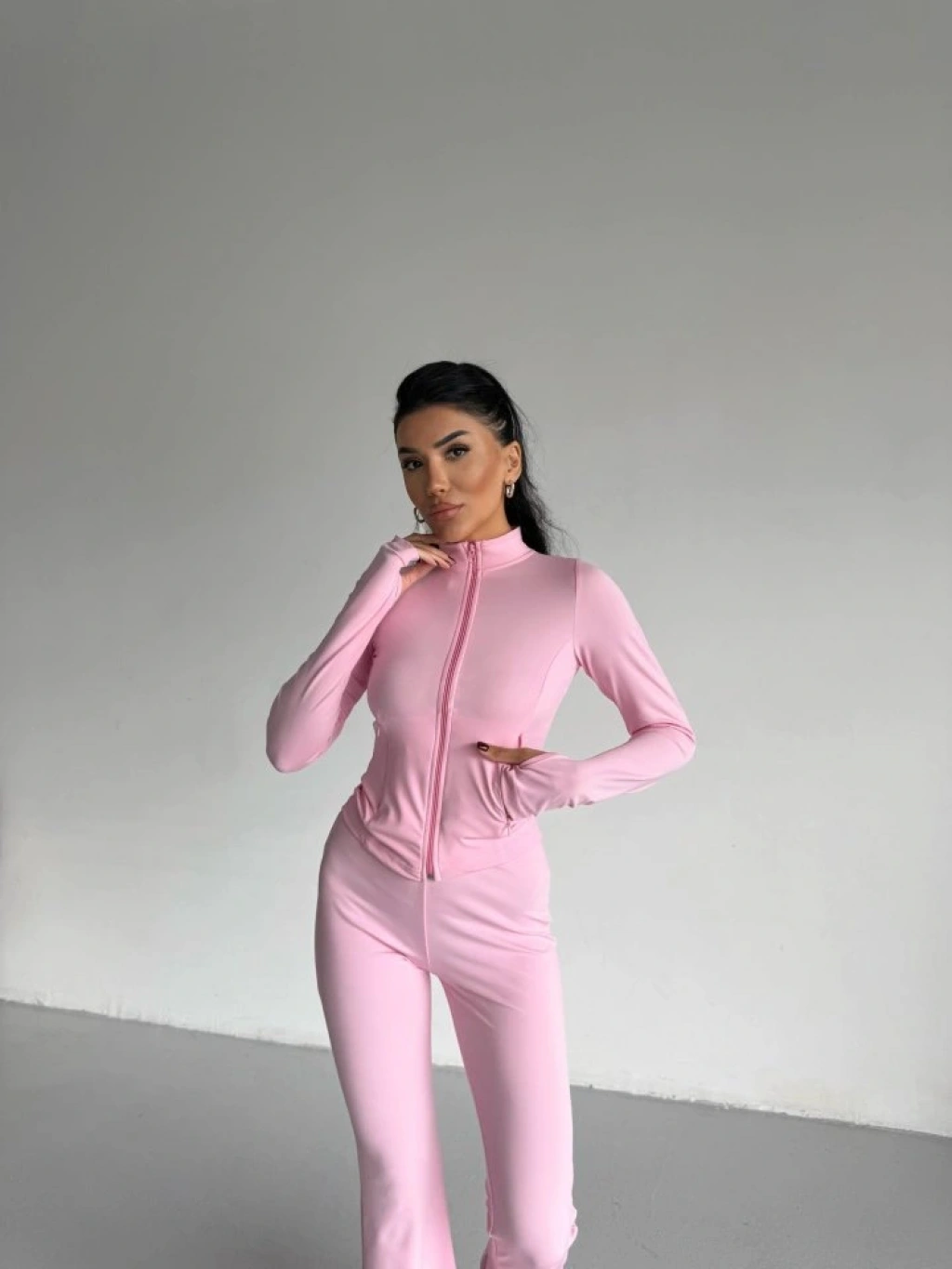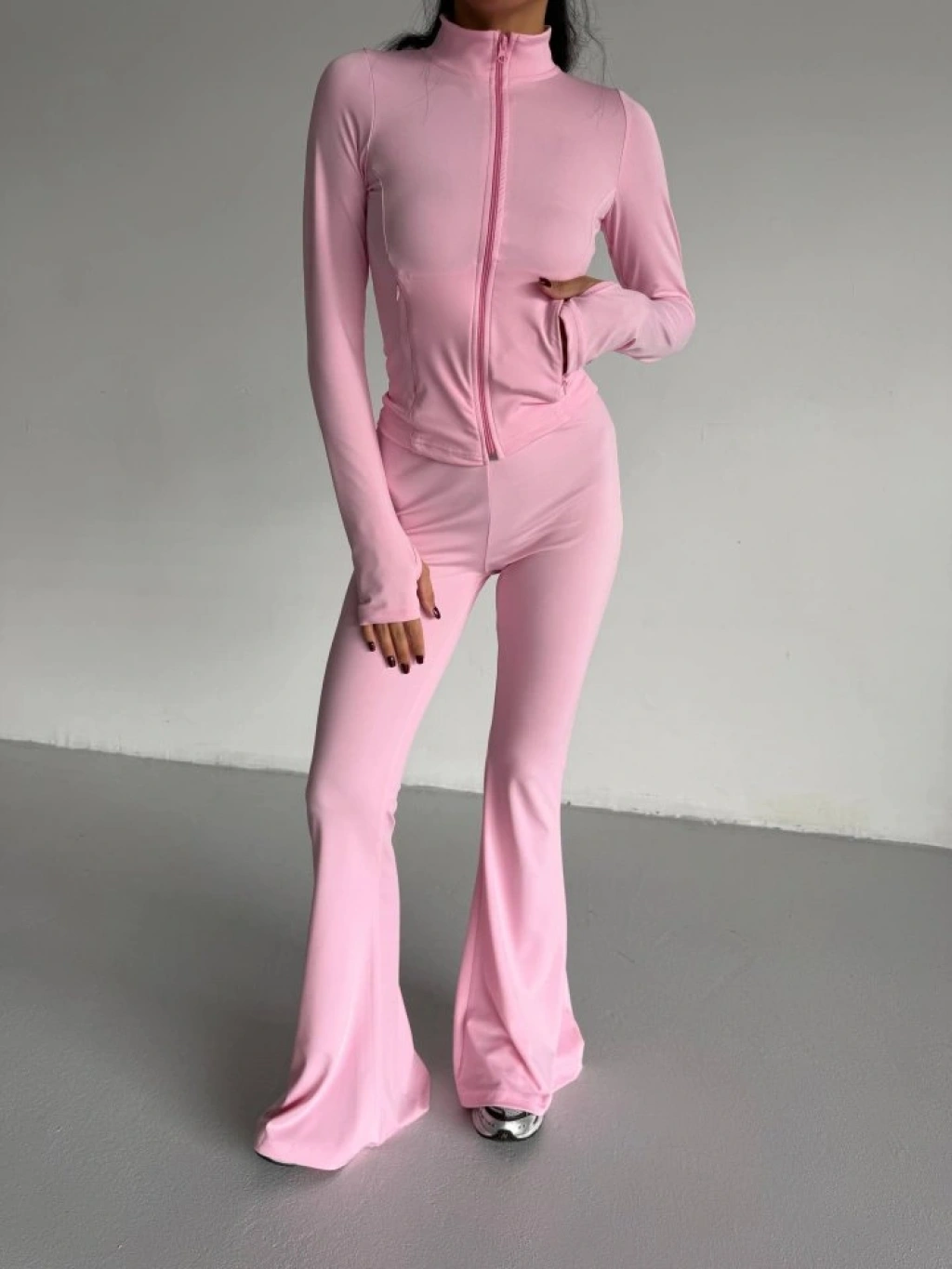 Kadın Balıkçı Yaka Cep Detaylı Ceket Ve Ispanyol Paça Spor Ikili Takım
