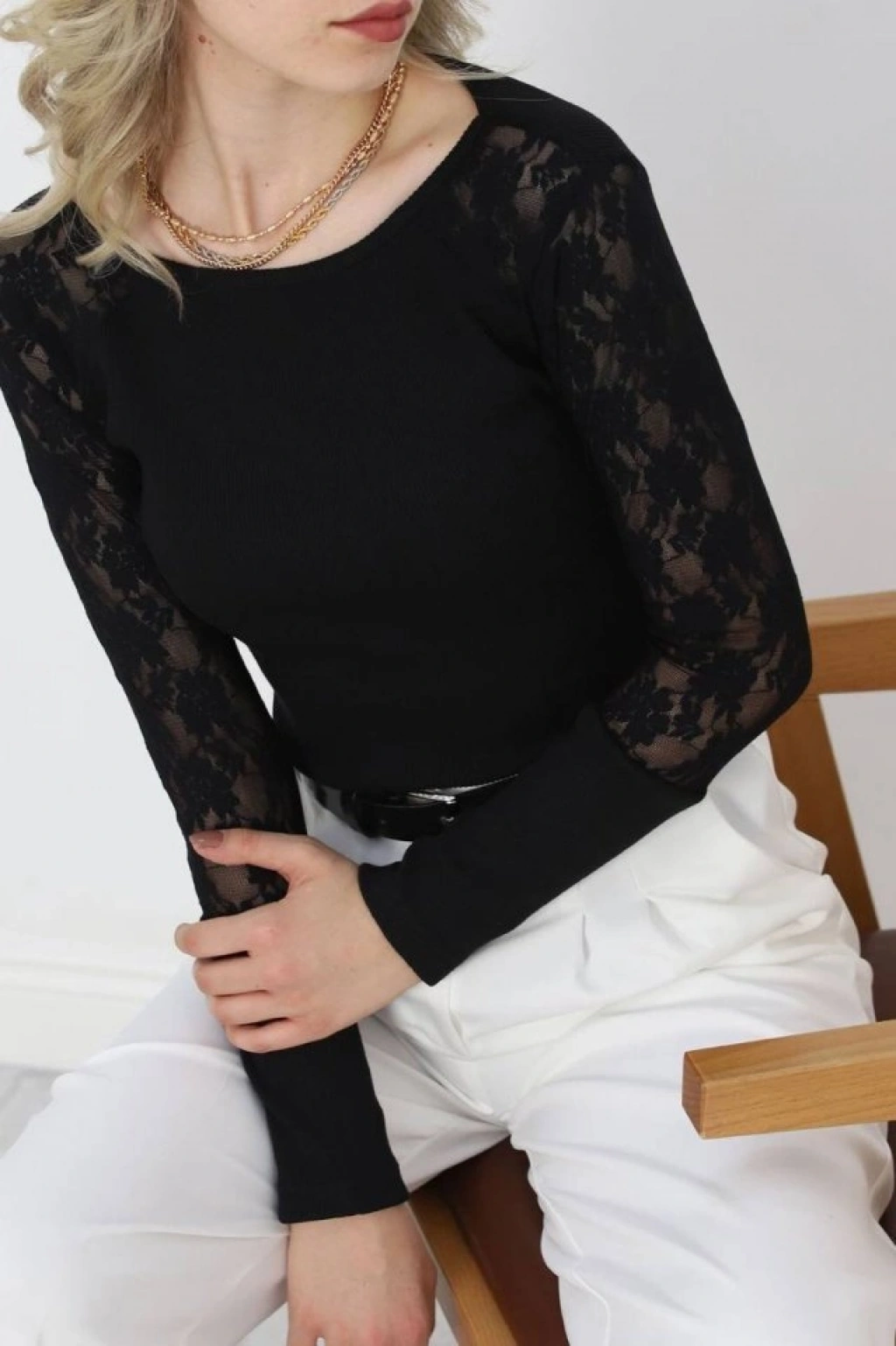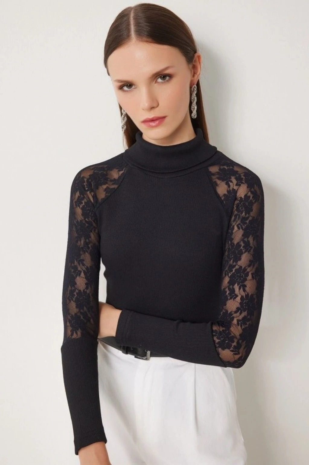 Kadın Balıkçı Yaka Kolları Tül Manşet Detay Kaşkorse Kazak