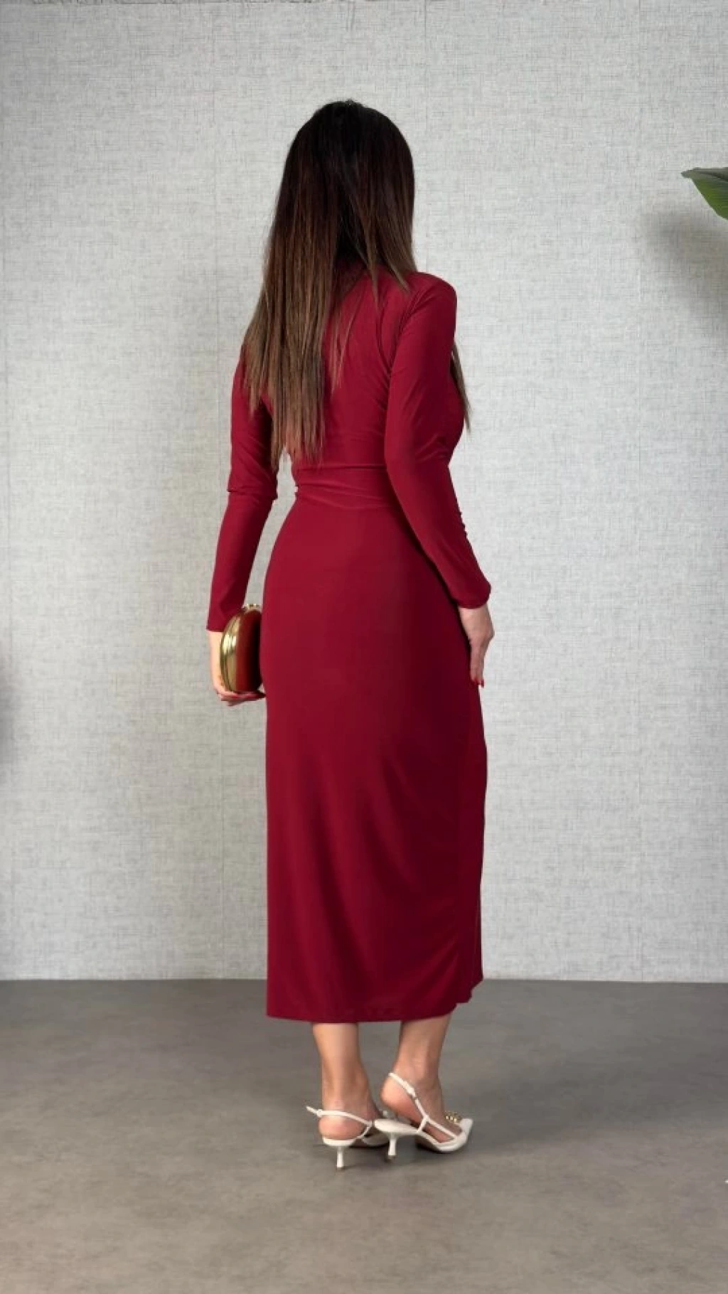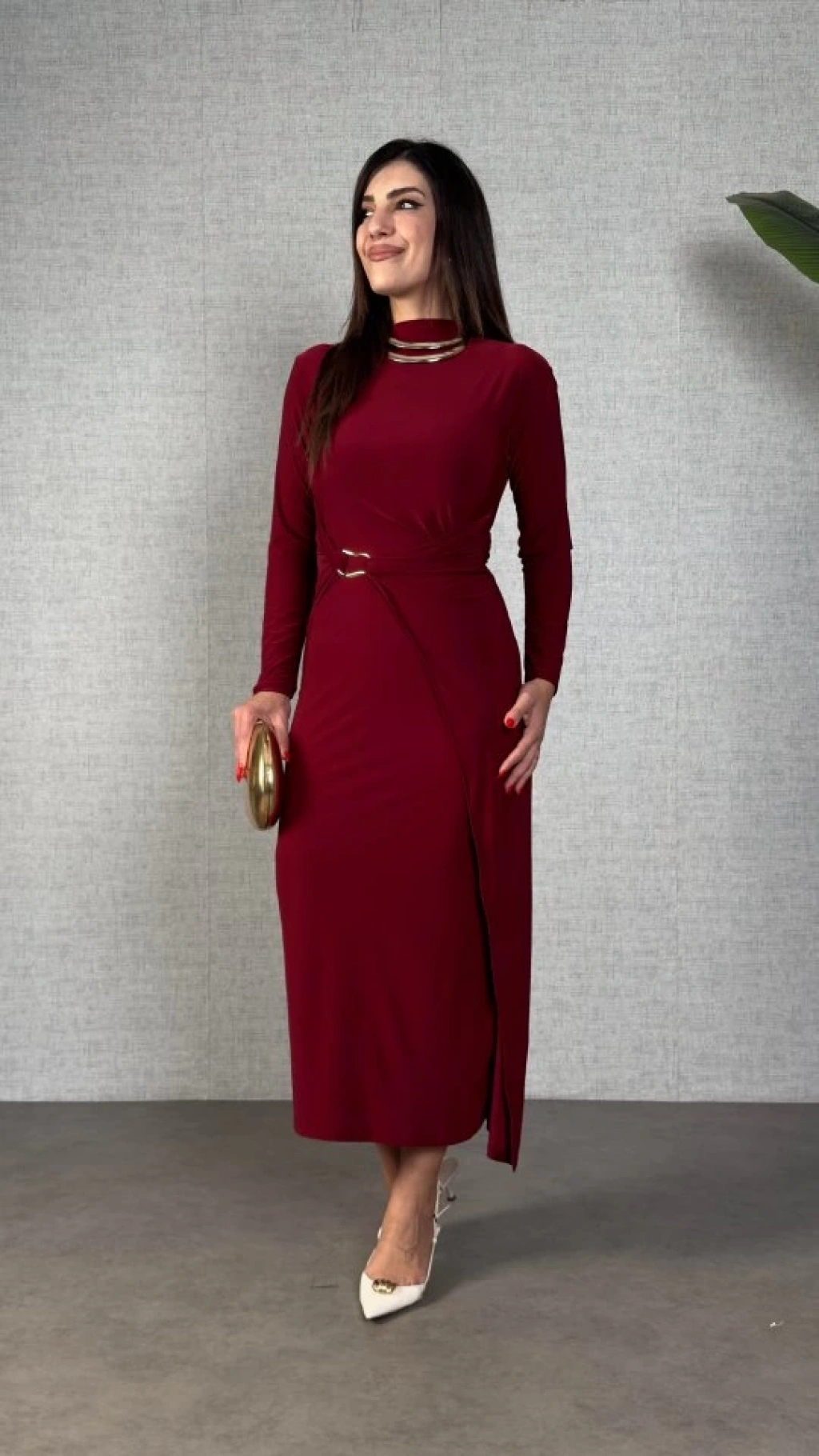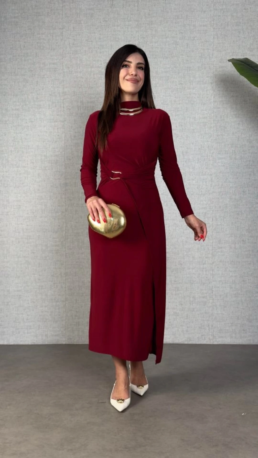 Kadın Balıkçı Yaka Toka Detay andy Kumaş Midi Boy Elbise