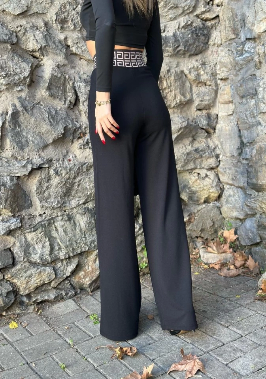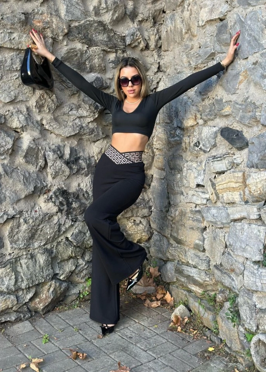 Kadın Belde Kruvaze Ve Ribana Detay Ispanyol Paça Ithal Krep Pantolon