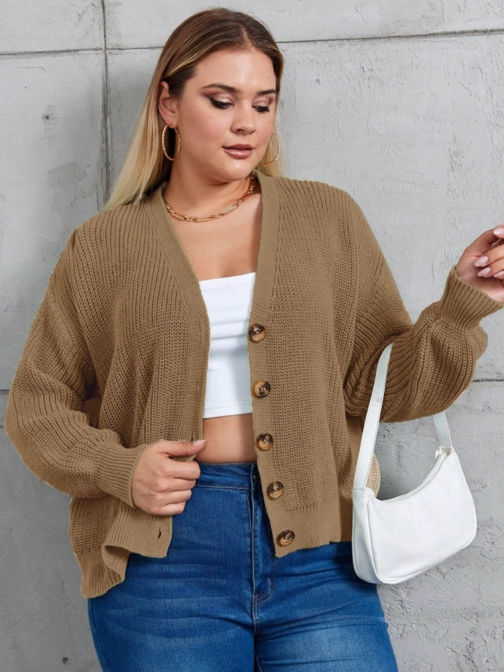 Kadın Beş Düğme Büyük Beden Triko Hırka