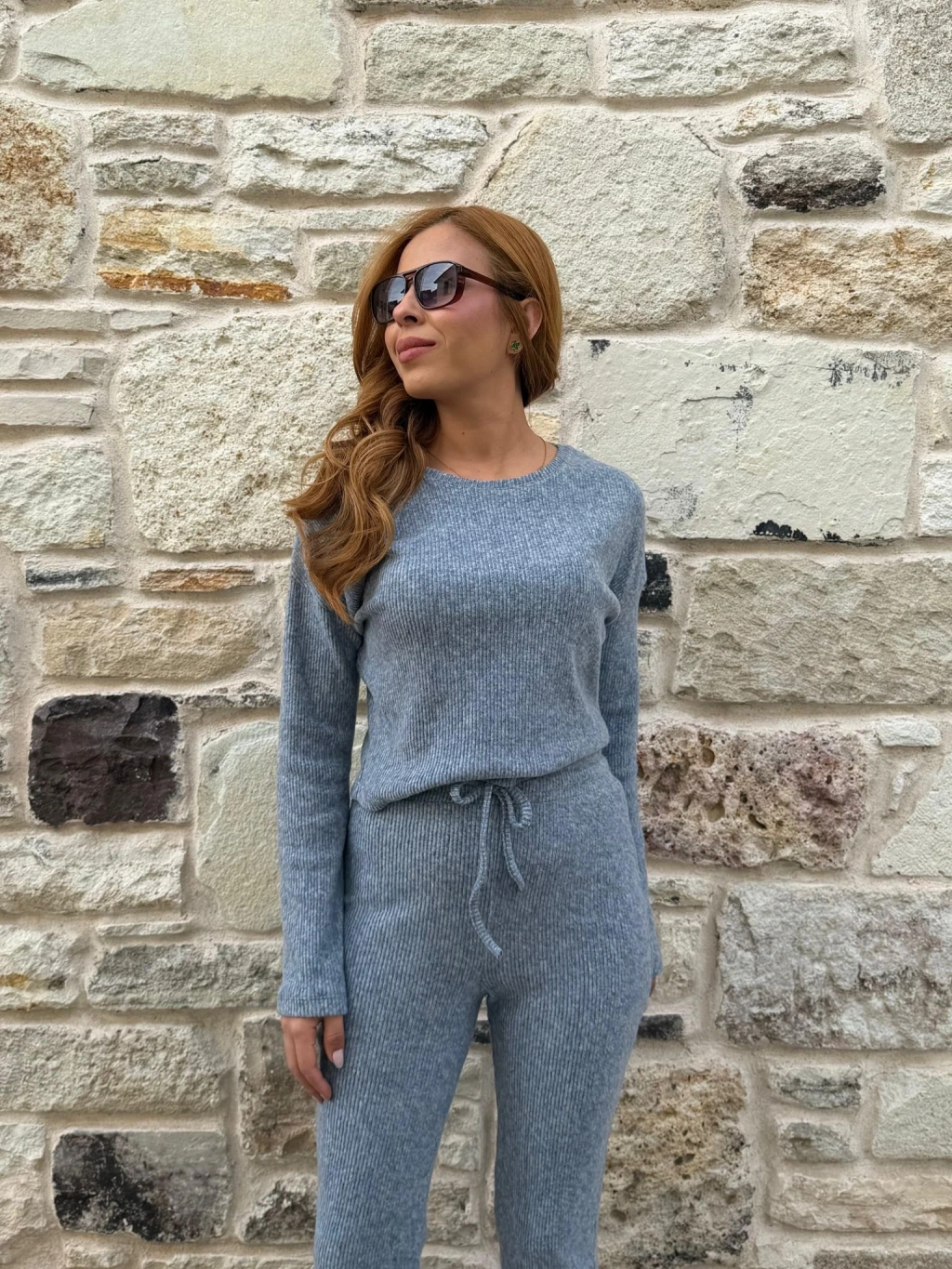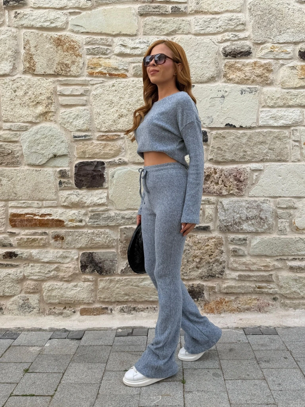 Kadın Bisiklet Yaka Crop Ve Ispanyol Paça Pantolon Ikili Takım