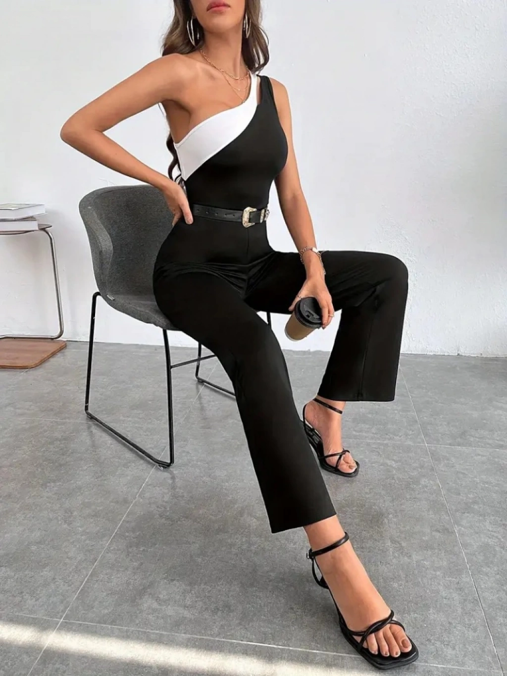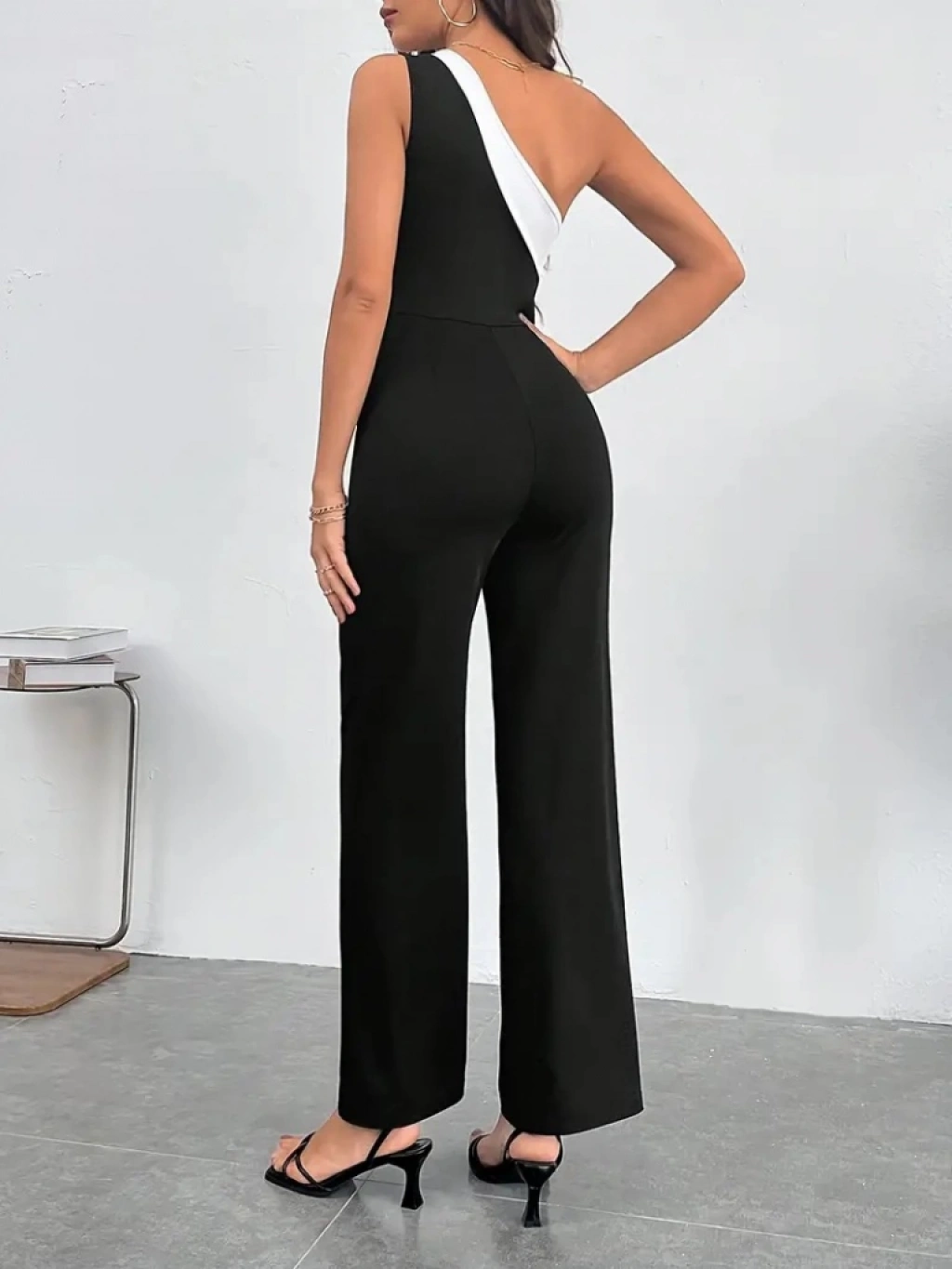 Kadın çift Renkli Tek Omuz Detay Ithal Krep Tulum (kemersiz)