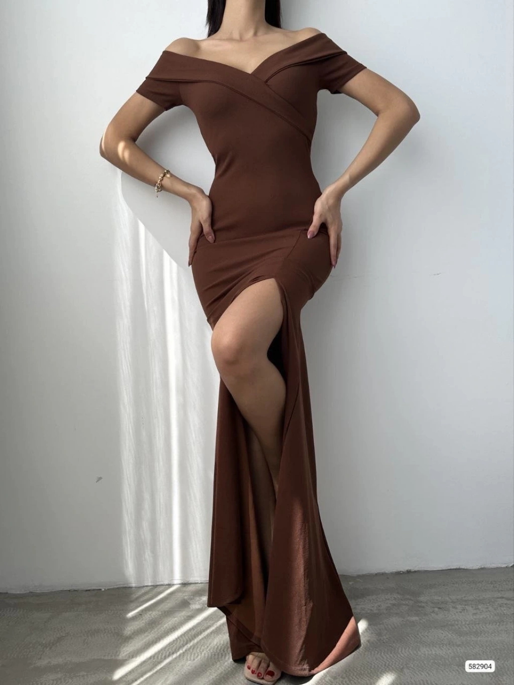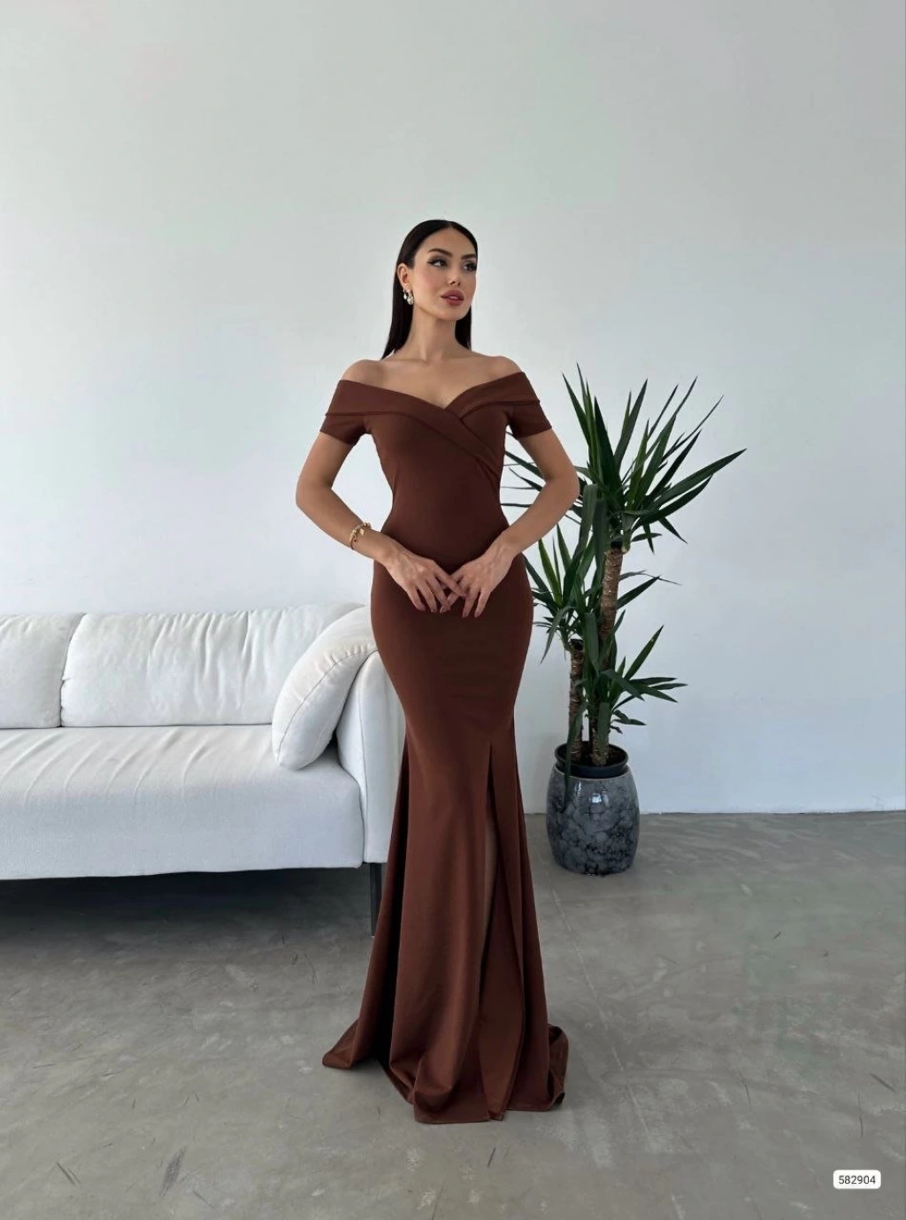 Kadın Dalgıç Kumaş Kayık Yaka Ve Dekolte Detaylı Elbise