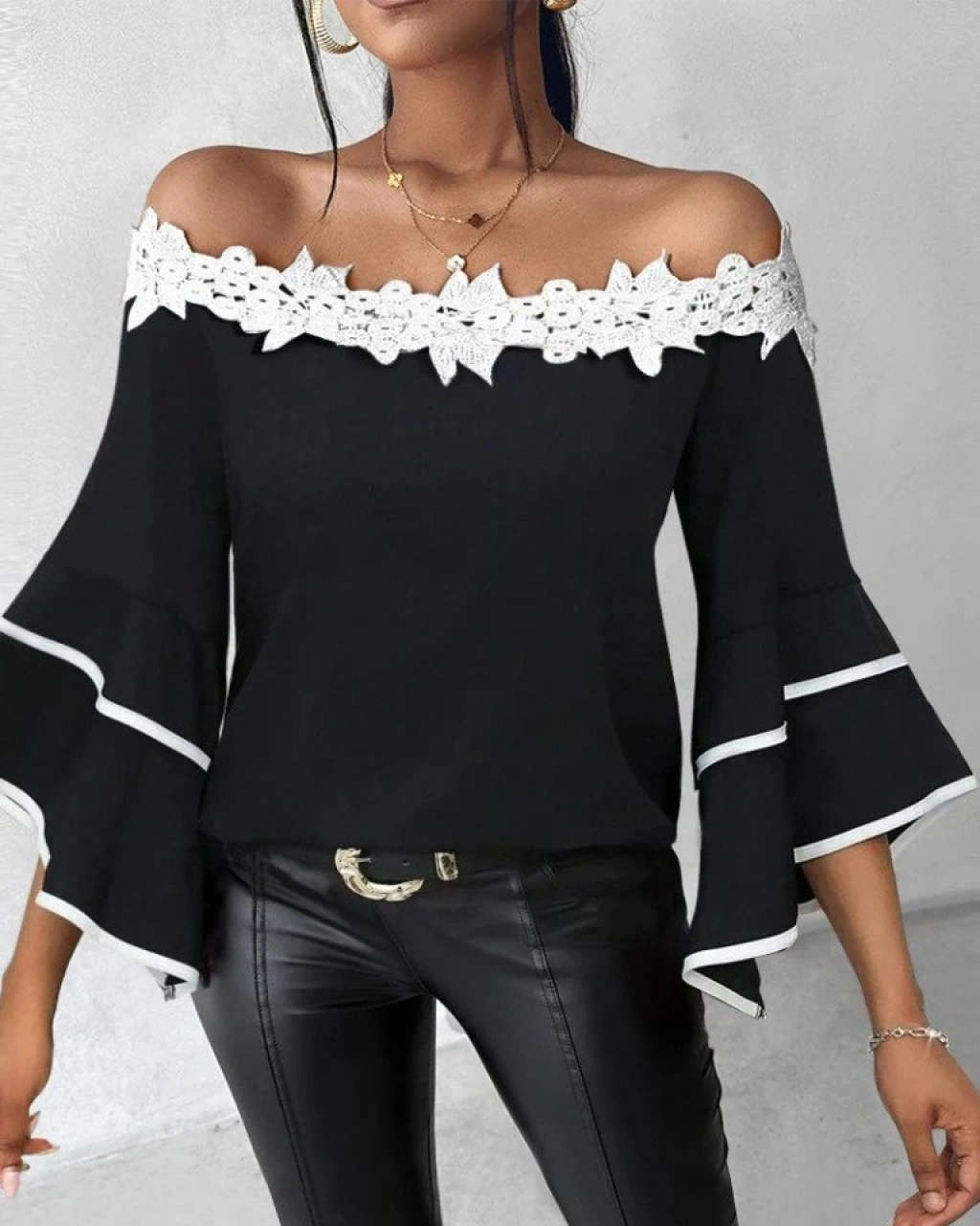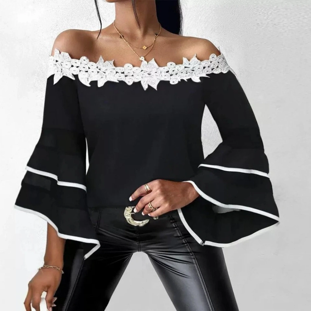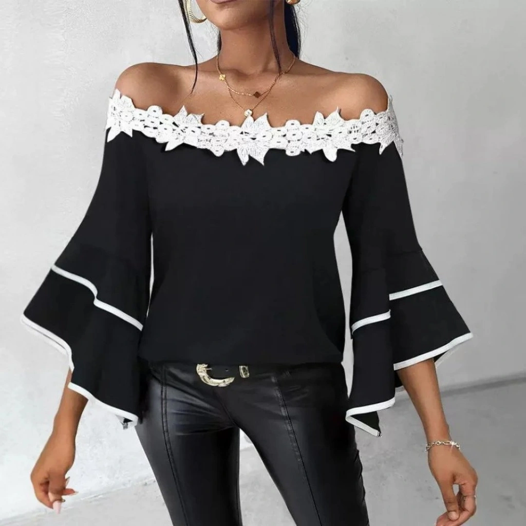 Kadın Dantel Detay Madonna Yaka Ispanyol Kol Fırsat ürün Bluz