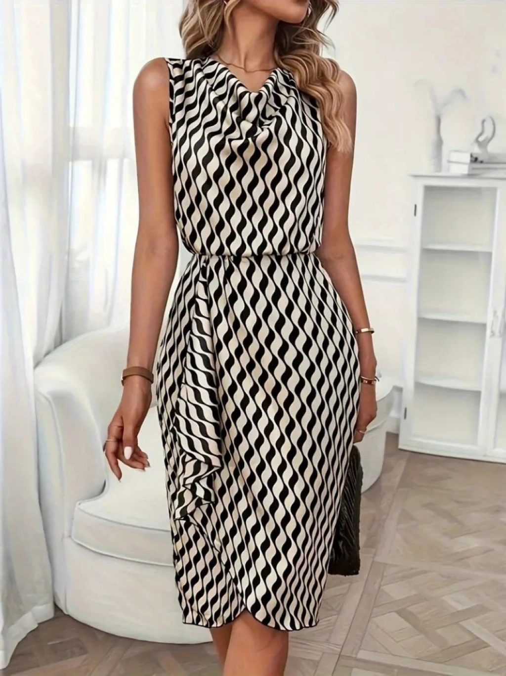 Kadın Degaje Yaka önden çapraz Detay Saten Midi Elbise