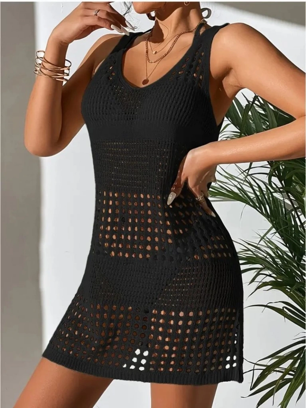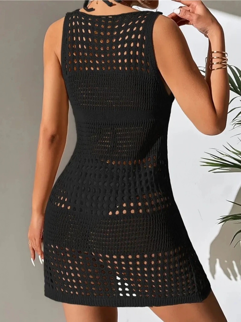 Kadın Delikli örgü Detay Mini Triko Pareo Elbise