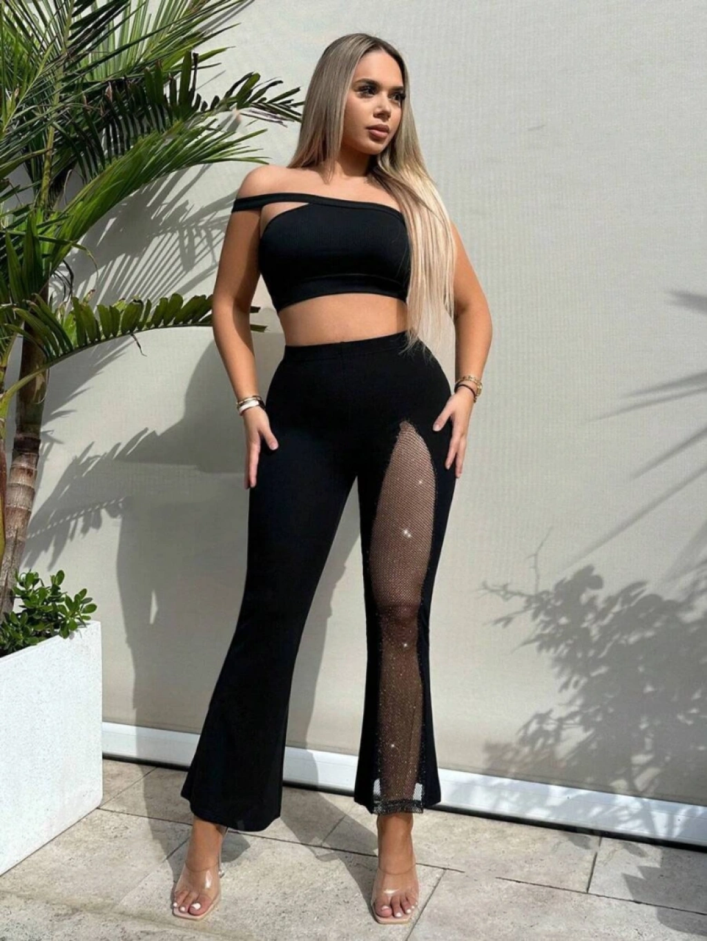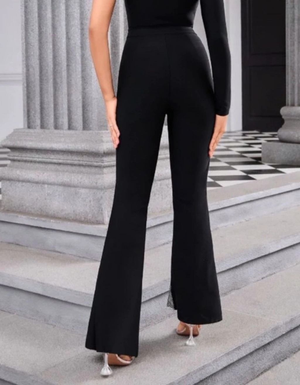 Kadın Derin Simli Tül Detay Ispanyol Paça Dalgıç Pantolon