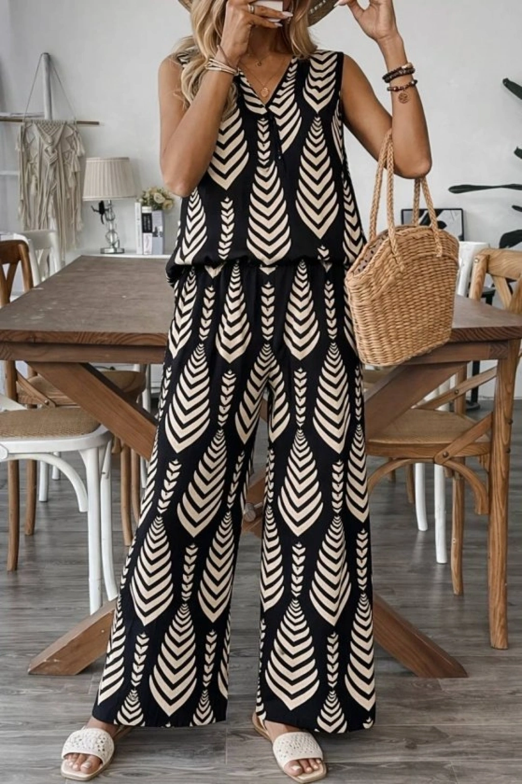 Kadın Desenli Dokuma Viskon Takım