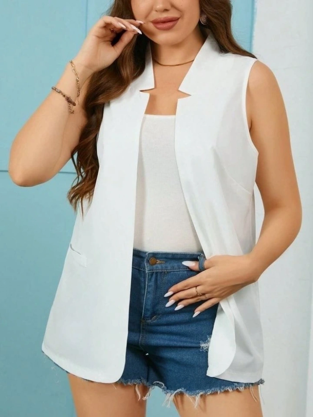 Kadın Duble Yaka Detay Sıfır Kol Ceket Yelek