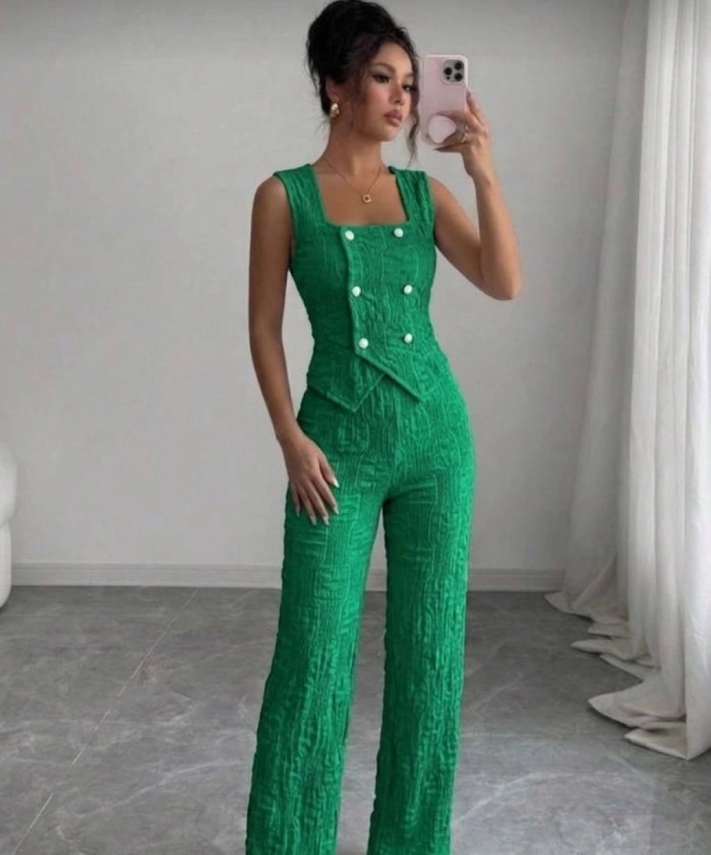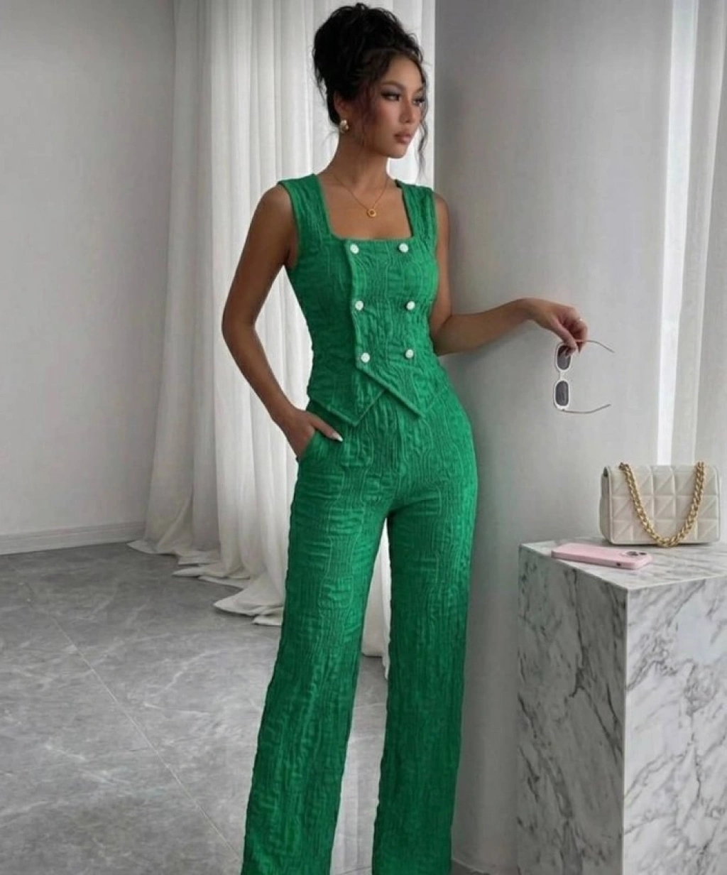 Kadın Düğmeli Bürümcük Kumaş Takım