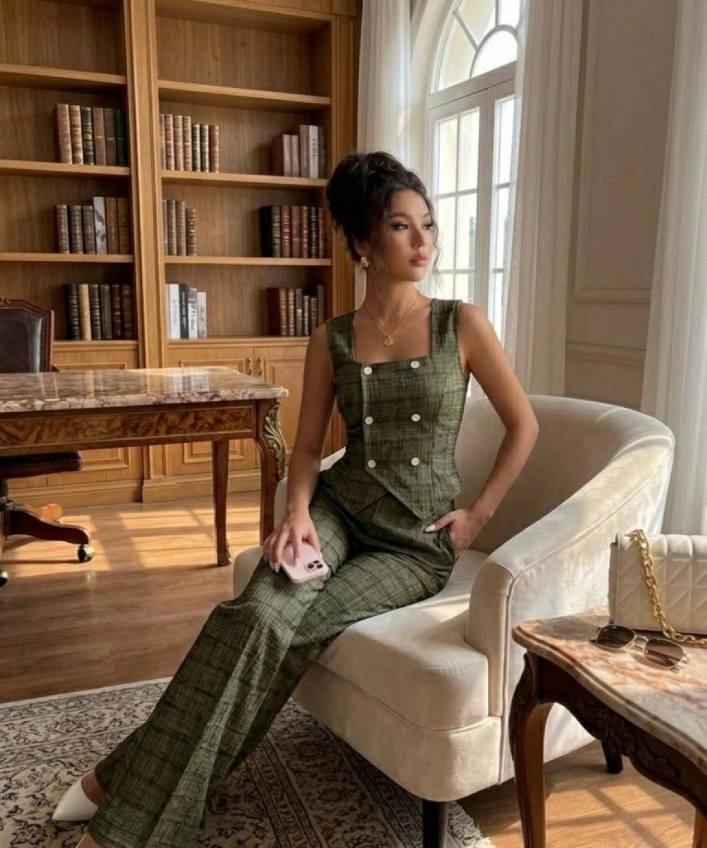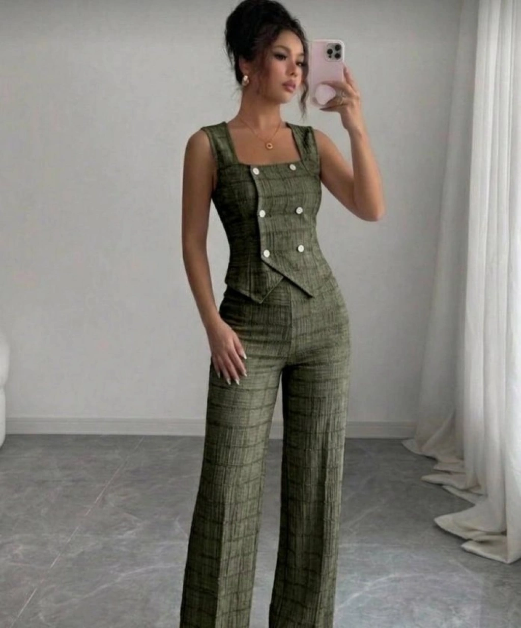Kadın Düğmeli Bürümcük Kumaş Takım