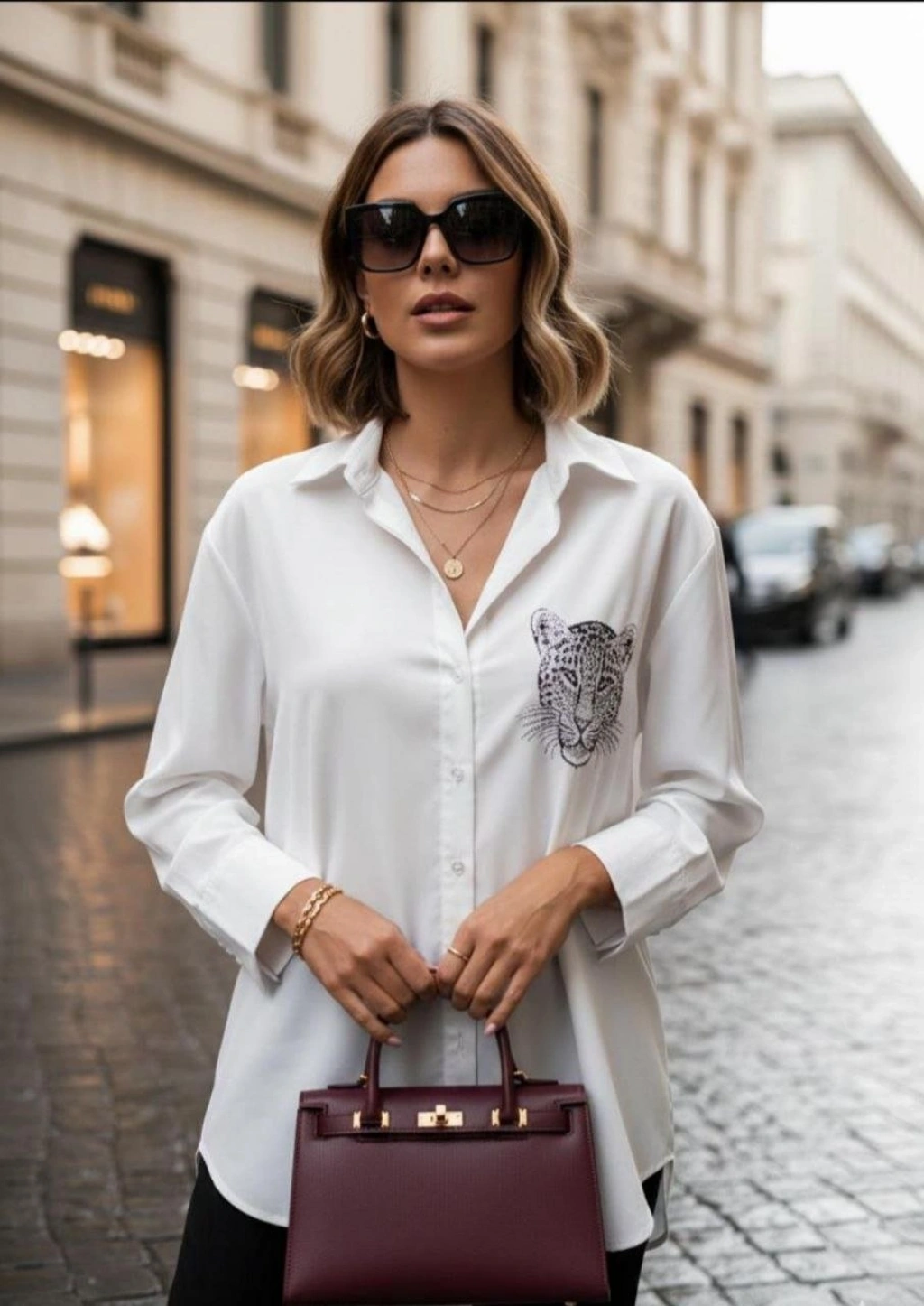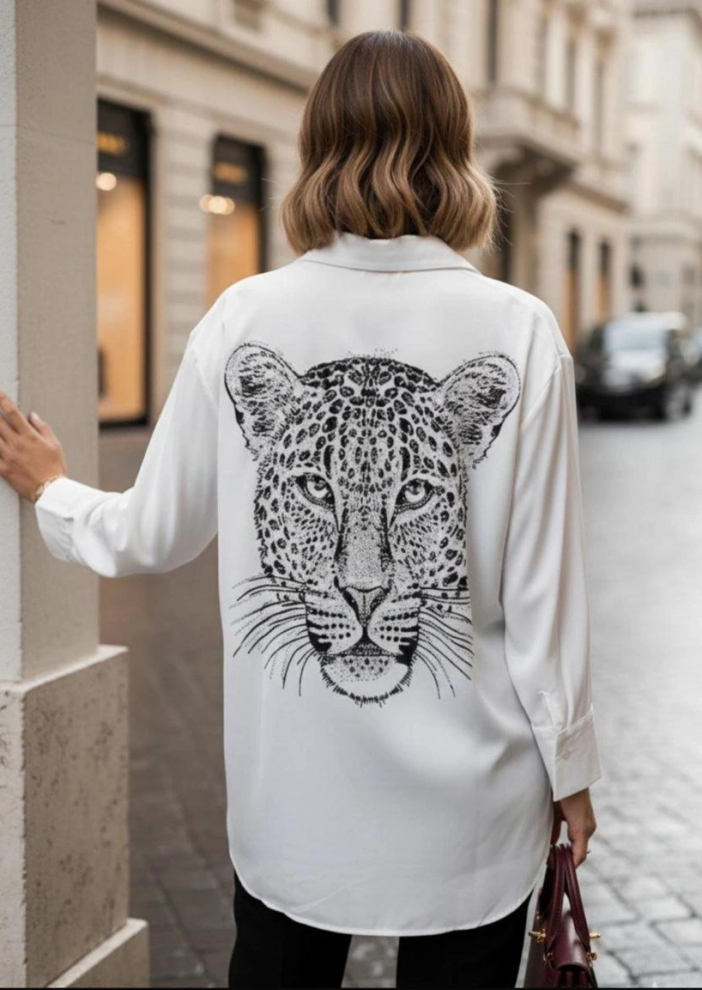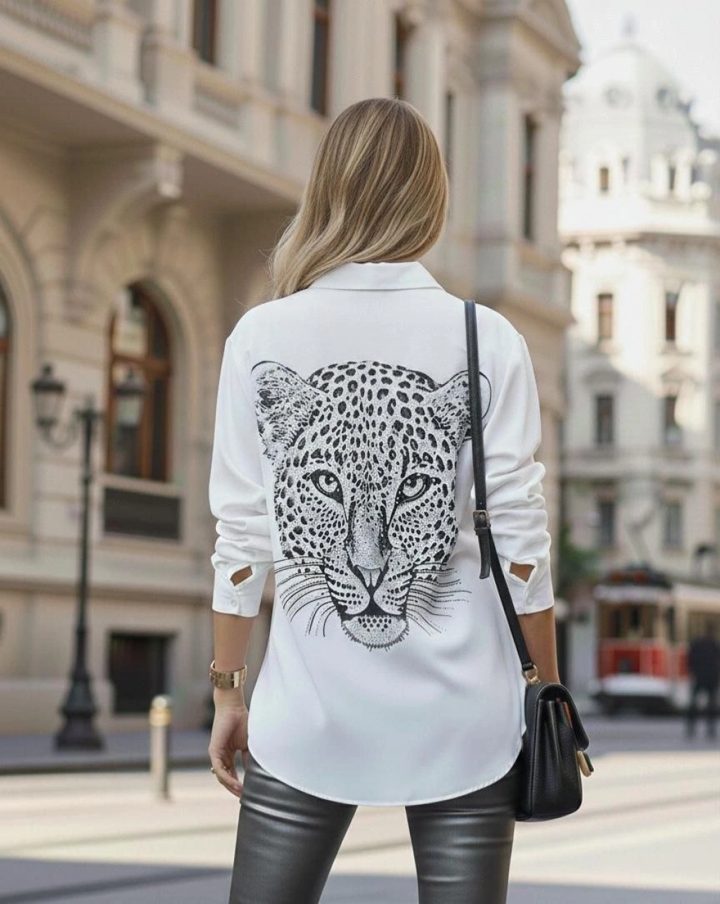 Kadın Leopar Baskılı Taş Işlemeli Jessica Kumaş Gömlek