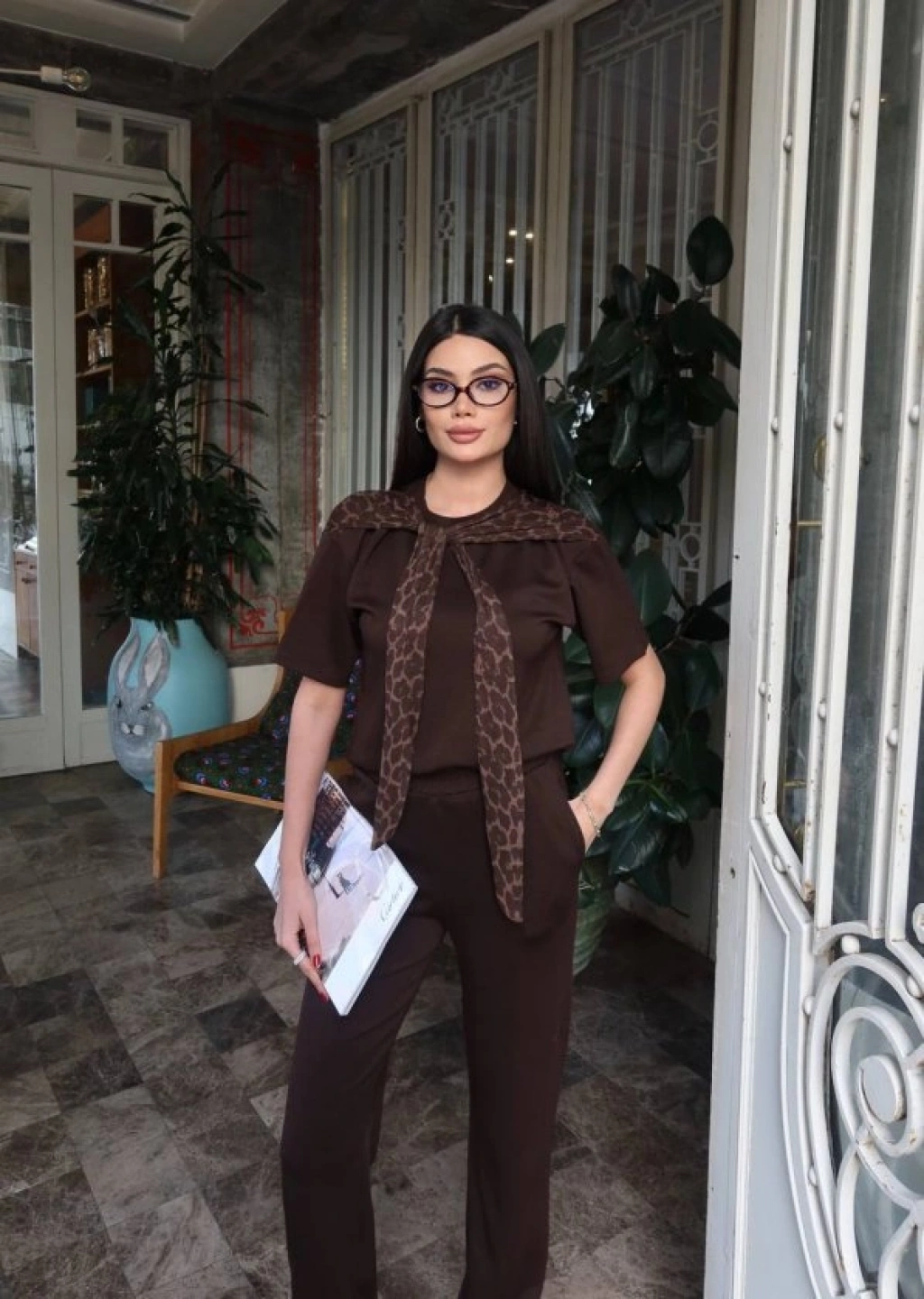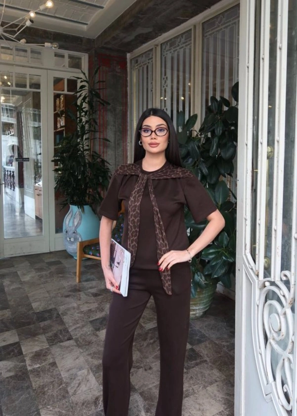 Kadın Leopar Detay Bağlamalı Takım