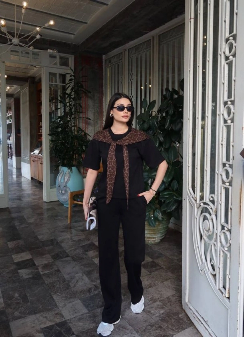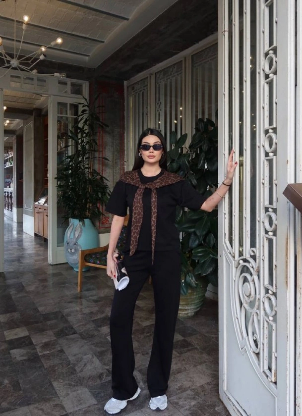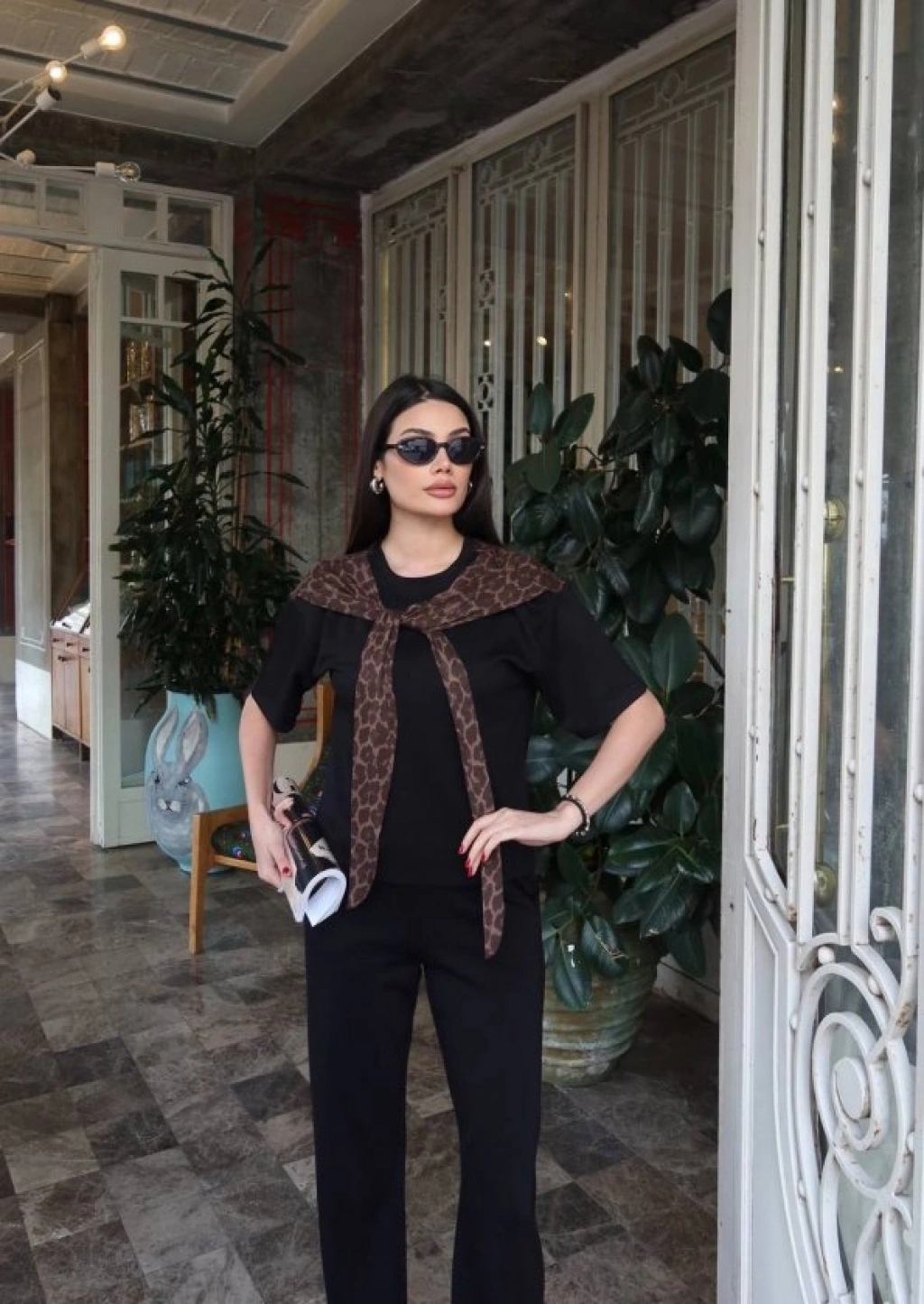 Kadın Leopar Detay Bağlamalı Takım