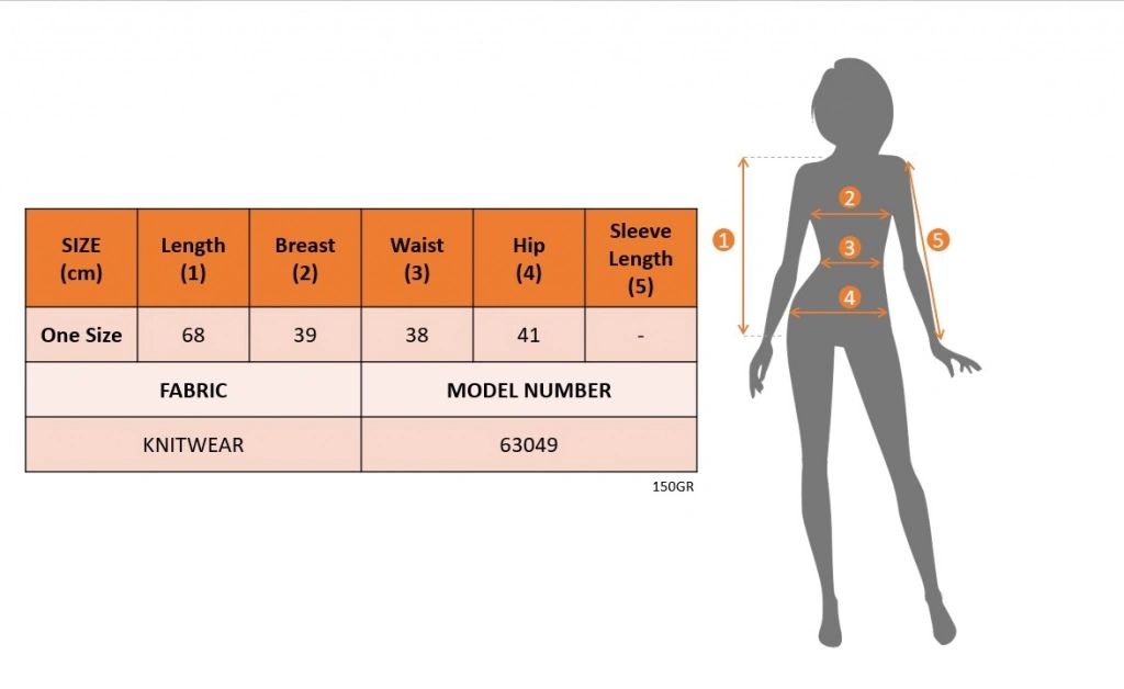 Modelin Ölçüleri: Boy:165, Kg:55, Göğüs:90, Bel:72, Kalça: 100