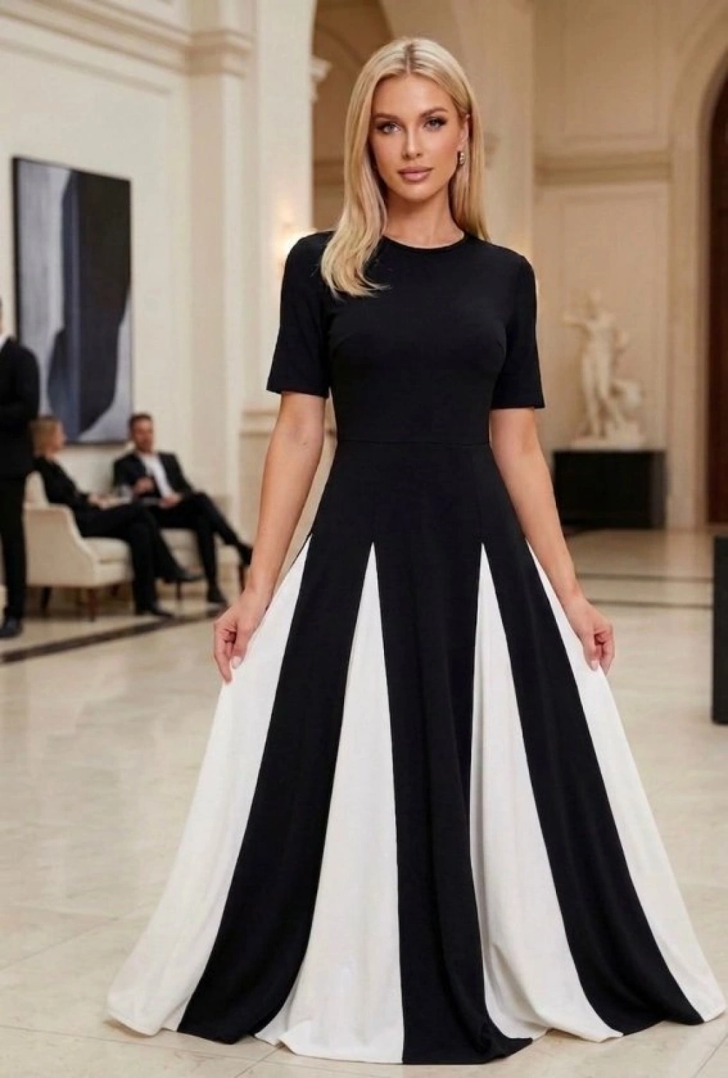 Kadın Eteği Parçalı Kısa Kol Maxi Elbise
