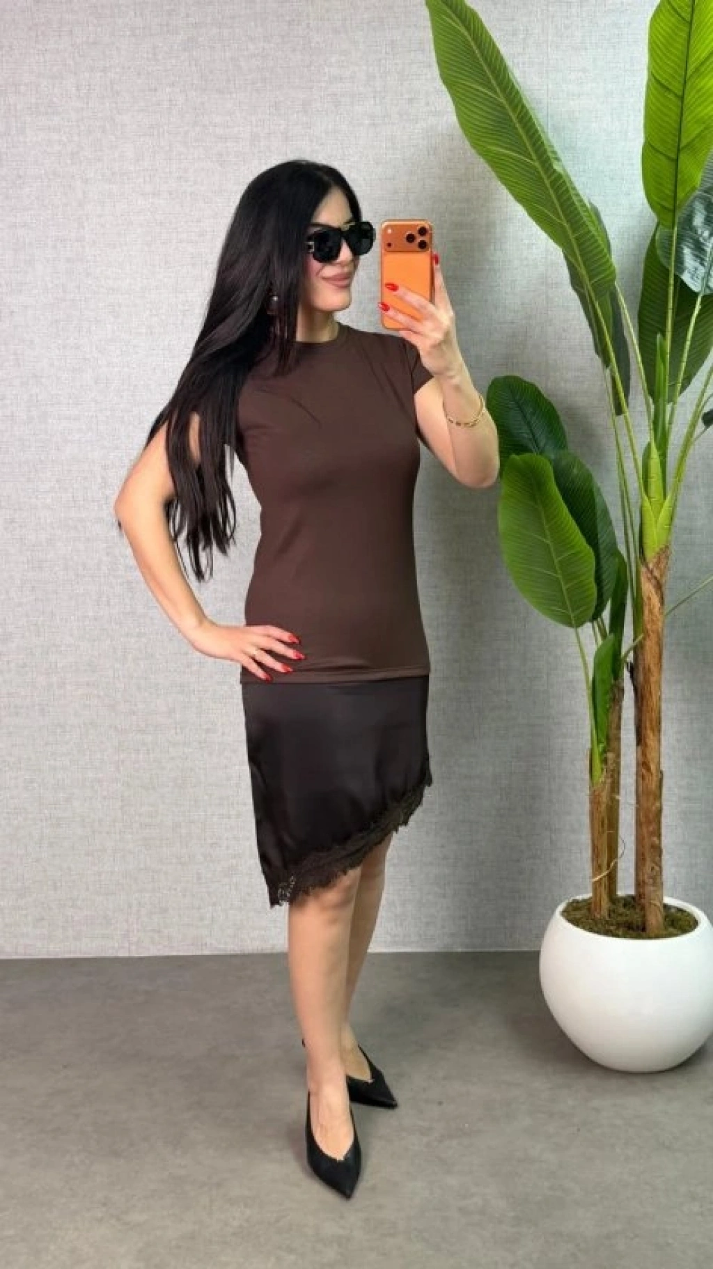 Modelin Ölçüleri: Boy:165, Kg:55, Göğüs:90, Bel:72, Kalça: 100