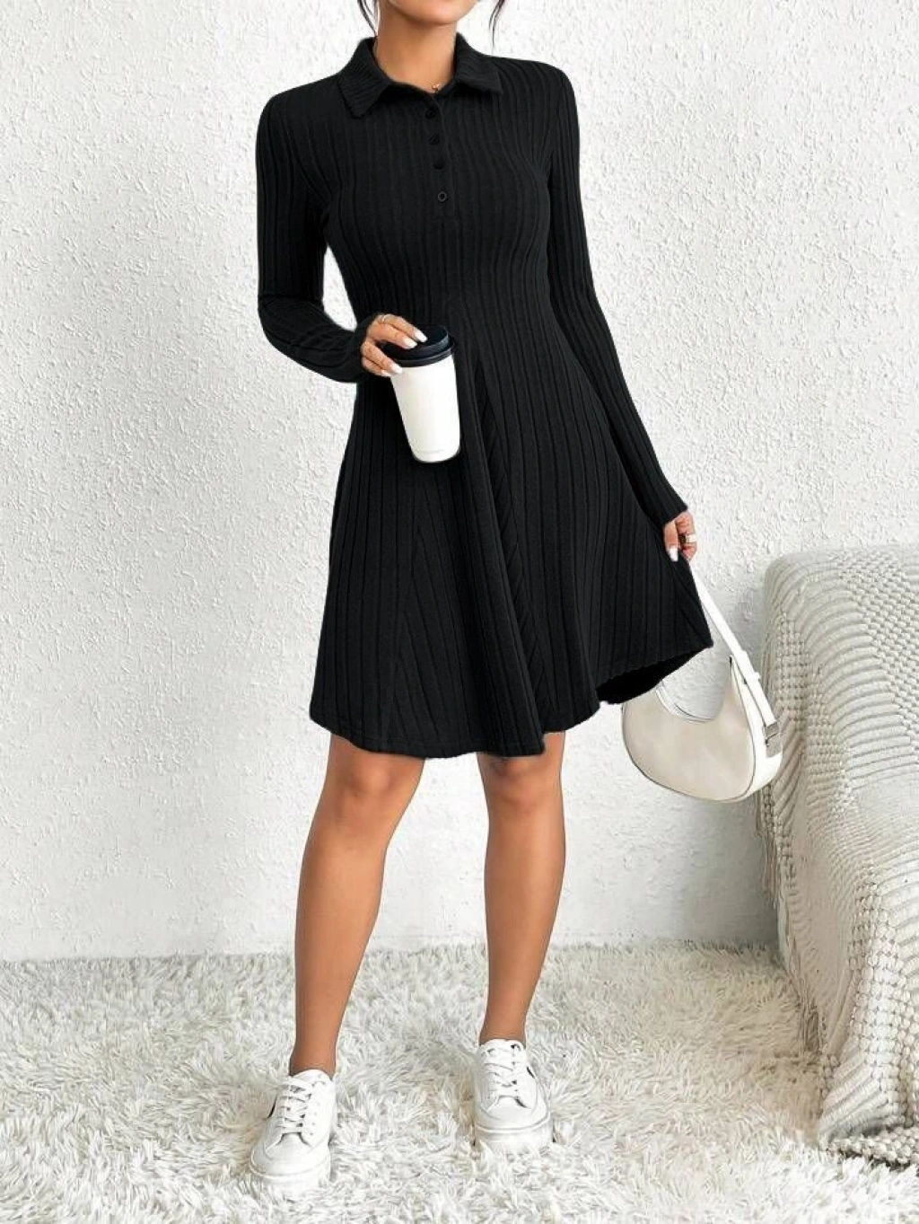 Kadın Gömlek Yaka Asimetril Kesim Etek Detay Kaşkorse Elbise