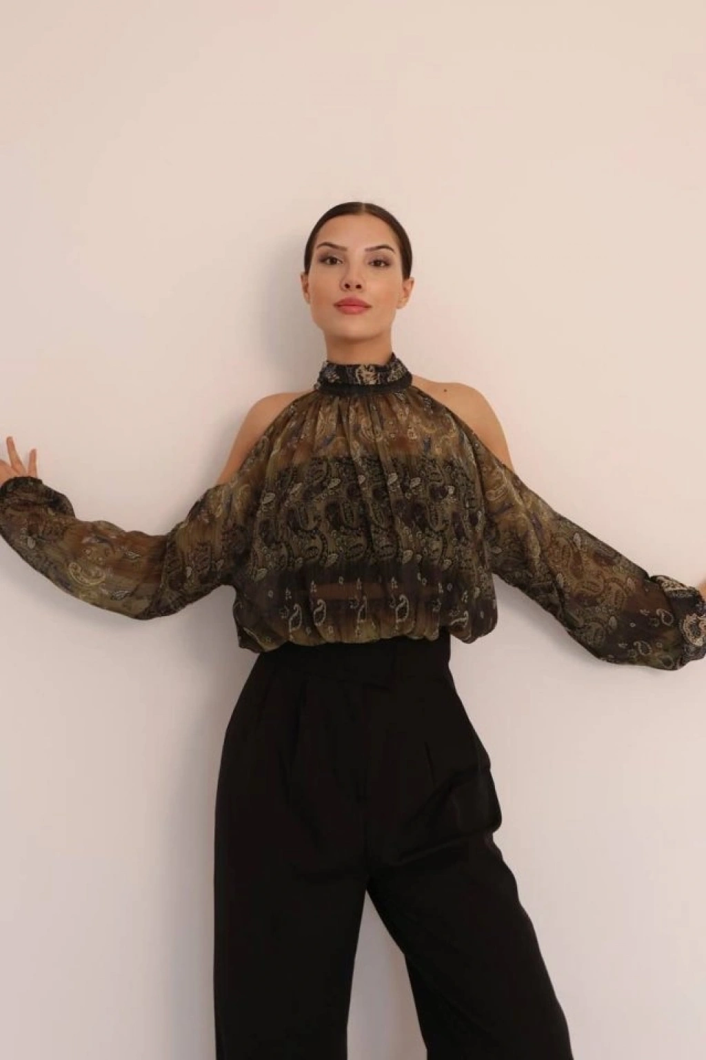 Kadın Halter Yaka Full Transparan Omuz Dekolteli Bluz