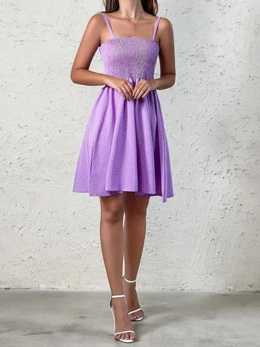 Kadın Ip Askılı Gipeli Desenli Kısa Süprem Elbise