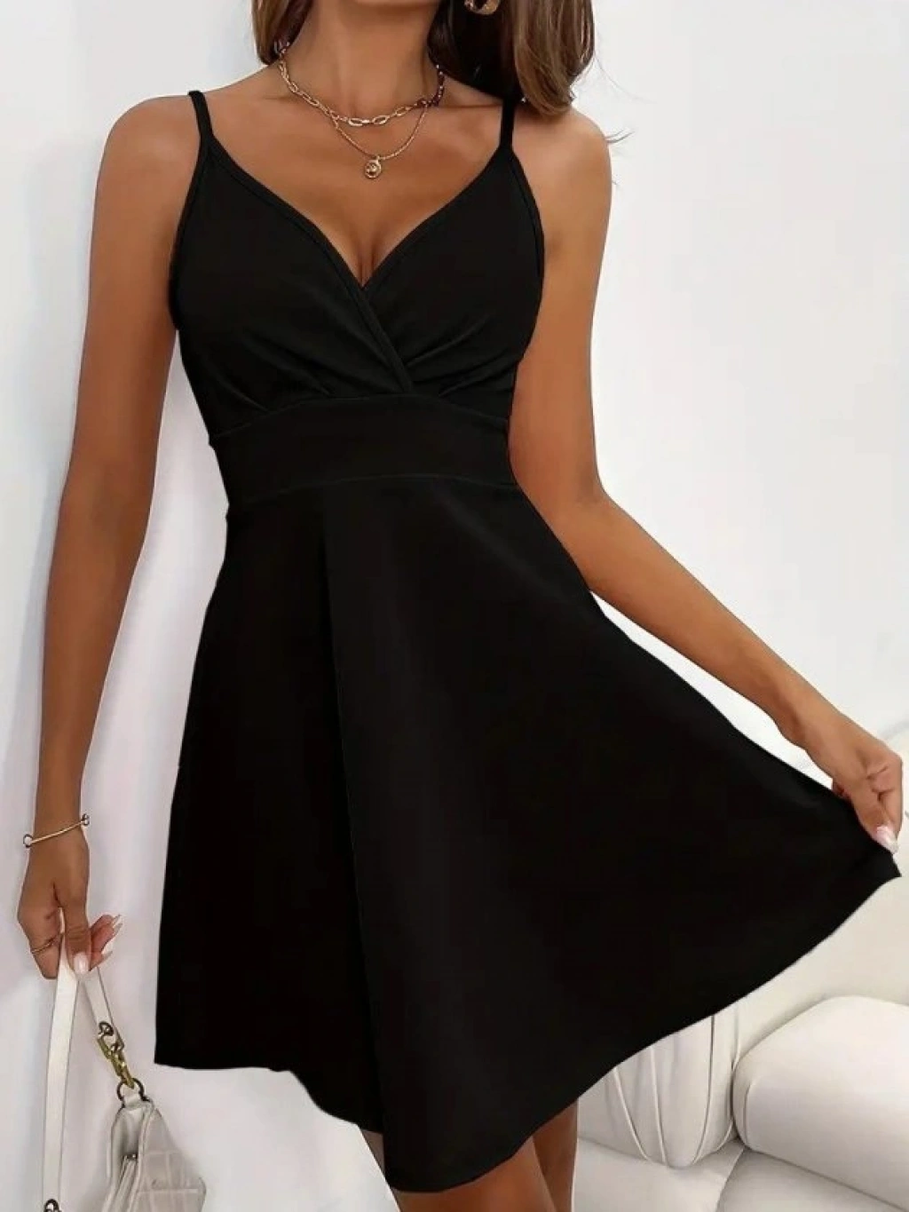 Kadın Ip Askılı Kruvaze Yakalı Kısa ıthal Krep Elbise