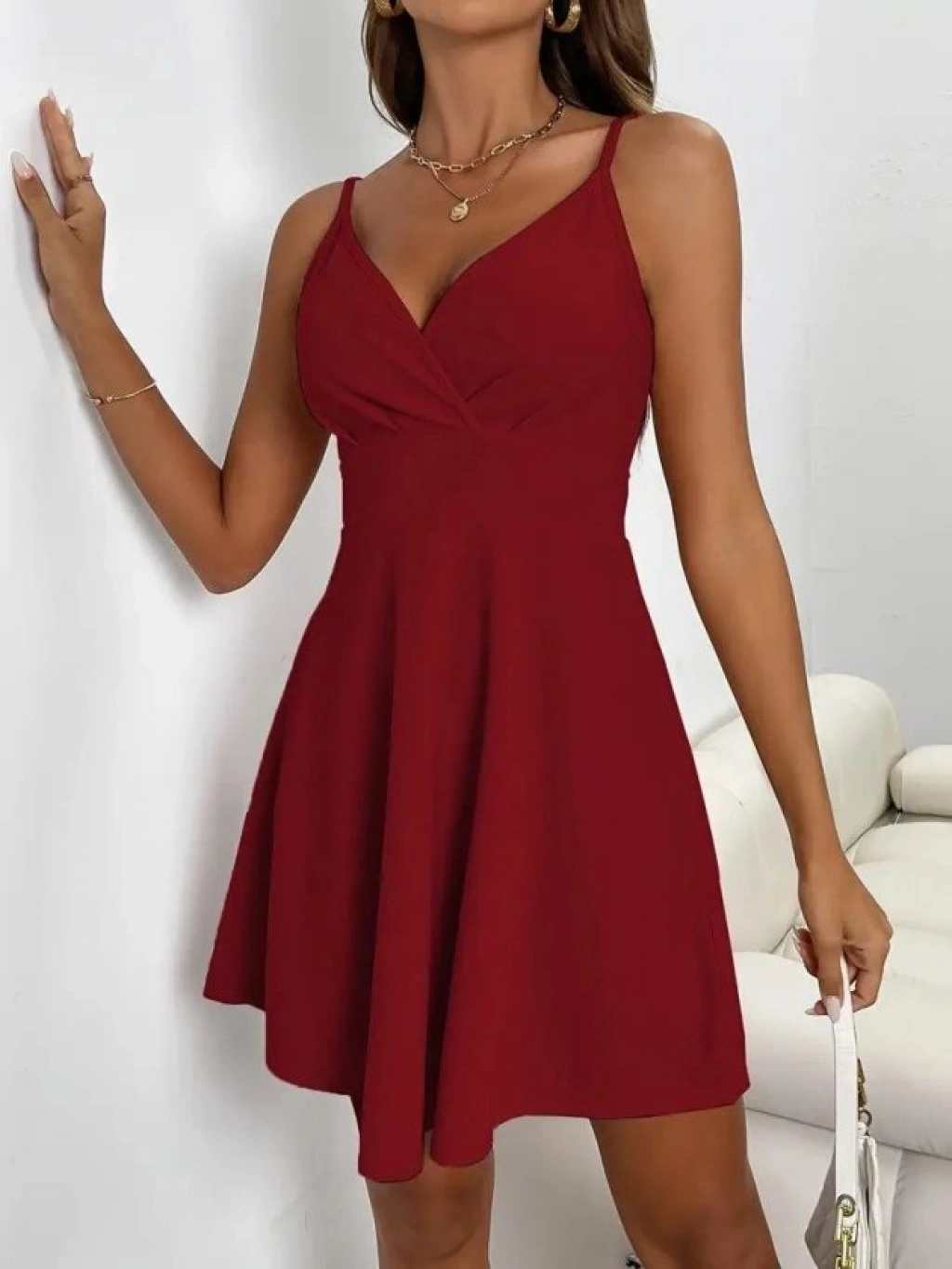 Kadın Ip Askılı Kruvaze Yakalı Kısa ıthal Krep Elbise