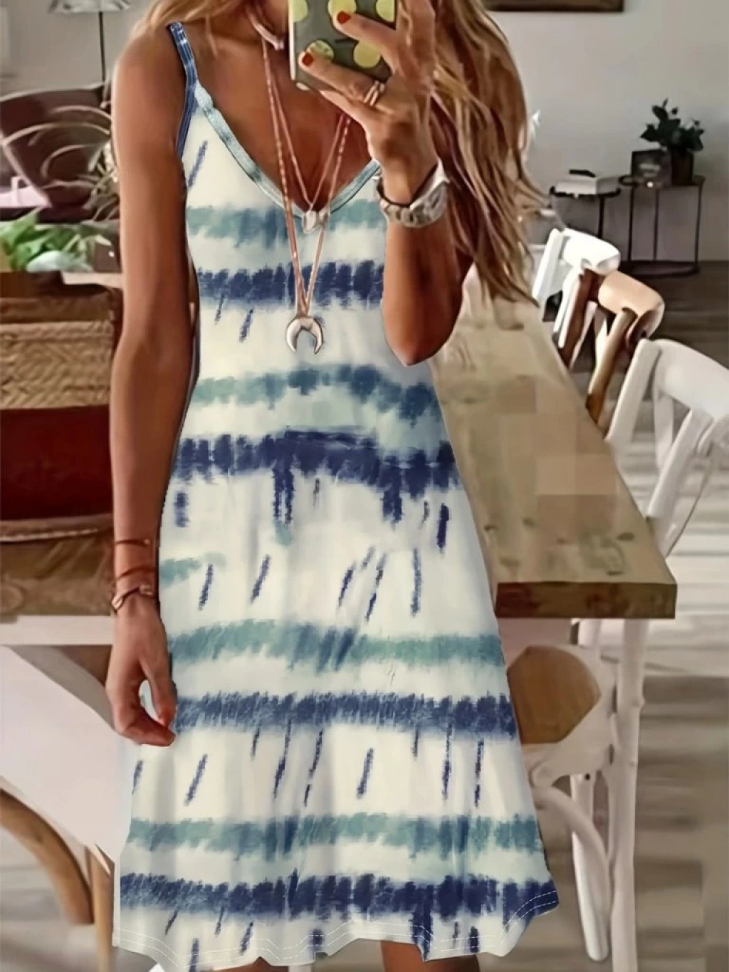 Kadın Ip Askılı V Yakalı Karışık Renkli Süprem Elbise
