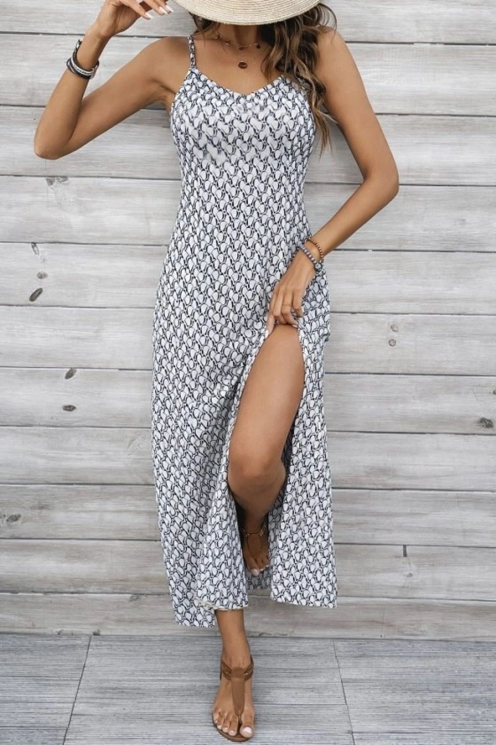 Kadın Ip Askılı V Yakalı Yırtmaçlı Uzun Süprem Elbise