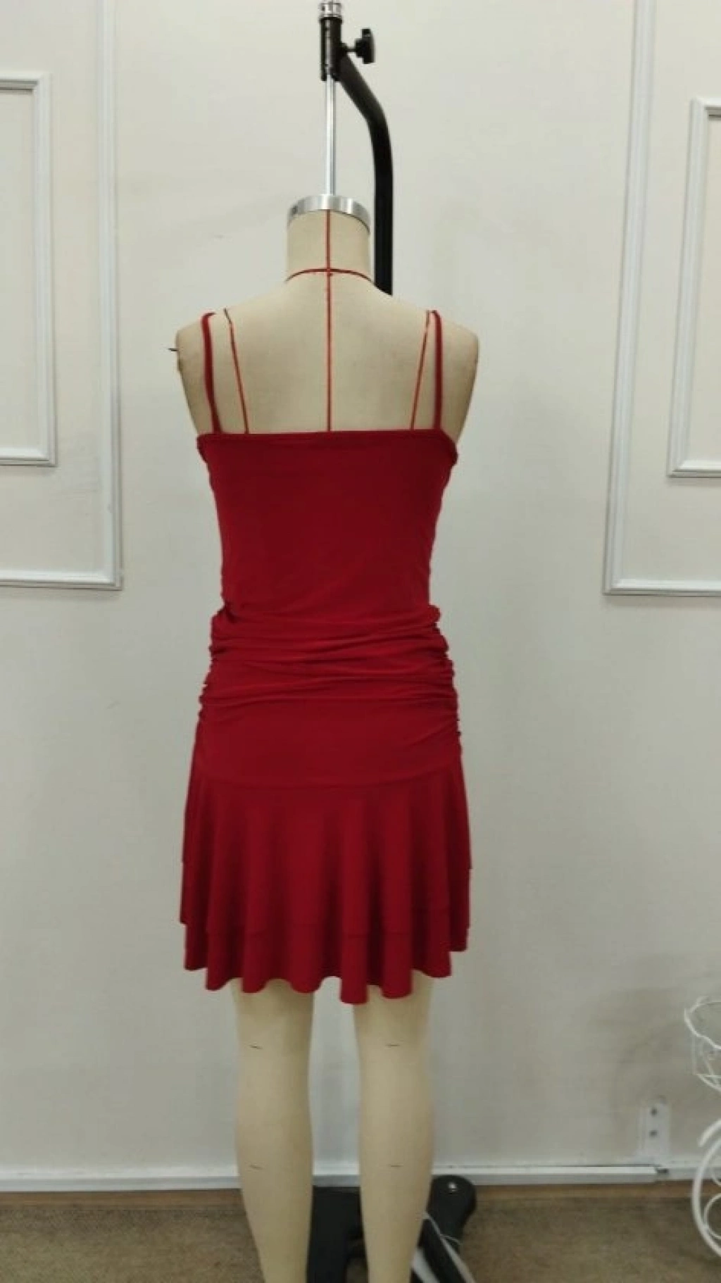 Kadın Ip Askılı Yuvarlak Yaka Büzgülü Kısa Sandy Elbise